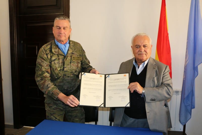 بعدها تم التوقيع على وثيقة تسليم وتسلم المشروع، ثم سلّم صعب درعا تكريمية للجنرال فاليرو، تلاه قطع قالب حلوى بالمناسبة.