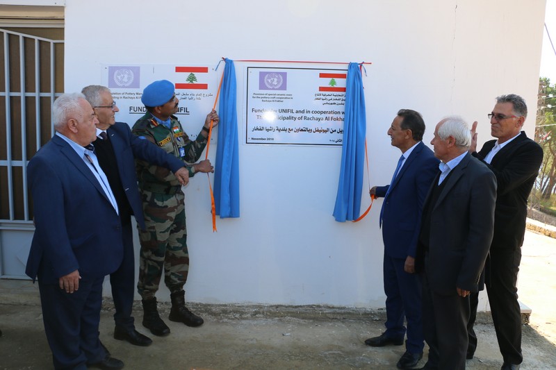 دشن قائد الكتيبة الهندية الكولونيل جيفان بي ورئيس بلدية راشيا الفخار سليم يوسف مشروع فرن كهربائي لصناعة الفخار، بتمويل من اليونيفيل، لتعاونية حرفيي صناعة الفخار في البلدة، وذلك في احتفال أقيم في قاعة التعاونية وحضور قائمقام حاصبيا أحمد كريدي، كاهن رعية كنيسة مار جاورجيوس في البلدة الأب فخري مراد، رئيس بلدية شبعا واتحاد بلديات العرقوب محمد صعب، رئيس التعاونية وسيم خليل، رئيس المنتدى الثقافي الإجتماعي في البلدة حنا حنا، رئيس مركز الدفاع المدني في راشيا الفخار سامر حردان، ممثل قسم الشؤون المدنية في اليونيفيل في القطاع الشرقي ماريوس كمبيان، ورؤساء بلديات ومخاتير وفعاليات وحشد.
