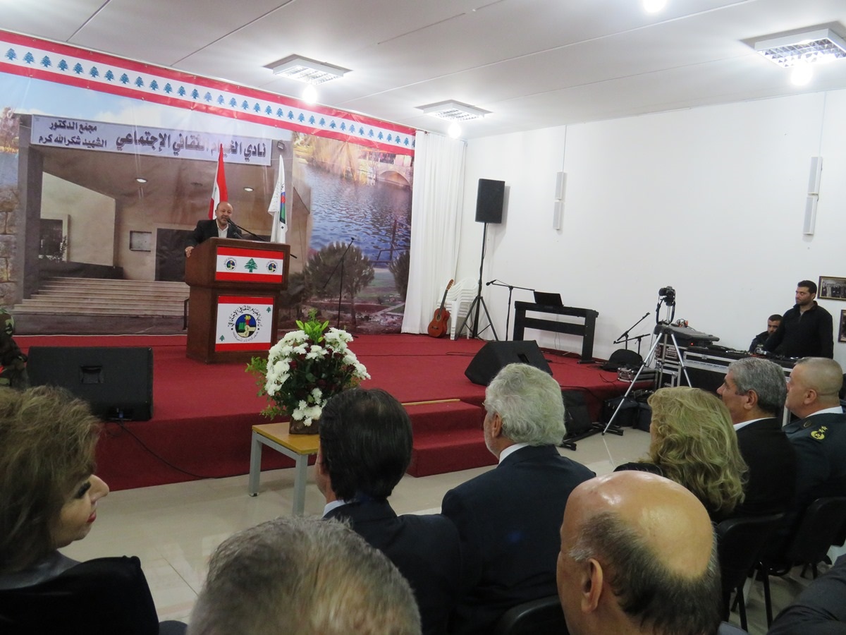 - ثالثاُ: أنك أحسنت اختيار هذا المجمّع الذي يحمل إسم الشهيد الدكتور شكرالله كرم، طبيب الفقراء، الذي حمل في قلبه هموم الوطن إلى أن سقط شهيداً شامخاً، رفض حينها أن يترك بلدته رغم أن أبواب النجاة كانت مفتوحة أمامه...