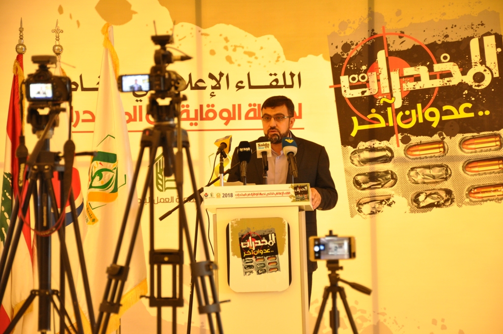 وقال: لقد انطلقت المنطقة الثانية في حزب الله بعد تشكيل لجنة من الاختصاصيين في ايار 2017 بحملة الوقاية من المخدرات – المخدرات عدوان آخر- ، بالتعاون مع الهيئة الصحية الاسلامية وجمعية العمل البلدي اخذين بعين الاعتبار المنظور الشامل والاكان الاربعة للمنظومة ، مركزين على الاهداف التالية: نشر المعلومات والمعارف المتعلقة بمخاطر الادمان والتعاطي، ورفع مستوى القدرة والمهارة على الكشف المبكر للتعاطي والادمان ورصد المتغيرات، ومتابعة حالات الادمان بهدف العلاج والتأهيل في المراكز المنخصصة، ومكافحة الترويج والاتجار وهذا الامر تقوم به اجهزة الدولة المتخصصة ونؤكد على ضرورة المضي قدما وبقوة للحد من حركة قوى العرض وهذا عمل اساسي وجوهري، فوضعت الخطط اللازمة وبذلت وما زالت تبذل جهودا كبيرة في مجالات التدريب والتثقيف والتقييم والمتابعة ، منذ البداية شكل الاعلام جزءا اساسيا من الحملة في تسليط الضوء على مضار المخدرات وحث القوى المعنية على المكافحة والحد من انتشار المخدرات والتعاطي، وهذا ما نحتاجه وسنحتاجه في المستقبل – الاعلام الارشادي التثقيفي الايجابي حول مخاطر هذه الافة.