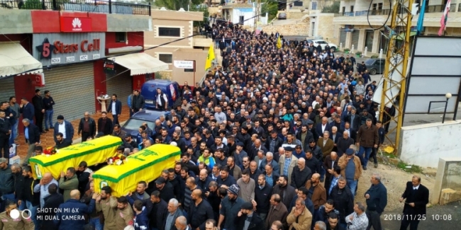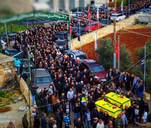 وشارك في التشييع في بلدة يحمر الشقيف الالاف من ابناء البلدتين والجوار، وقد لف النعشان براية حزب الله وحملا على اكتاف المحبّين وسط اجواء من الحزن واللوعة، الى مثواهما الاخير في روضة يحمر الشقيف.