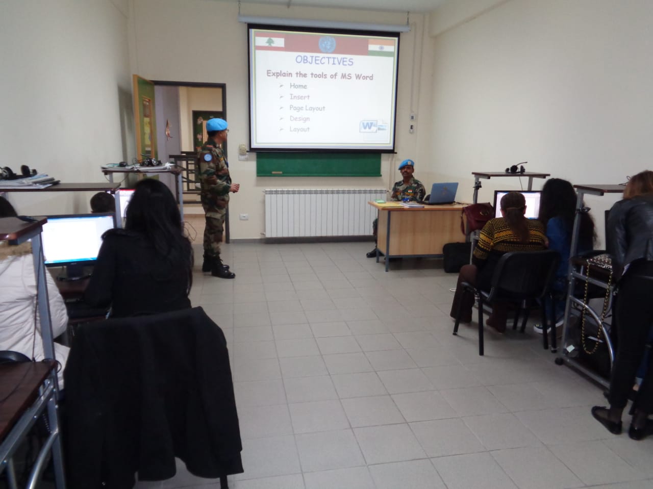 بدأت الكتيبة الهندية العاملة في قوات اليونيفيل في الجنوب بتنفيذ برنامج تعليمي خاص بالحاسوب في مركز الرعاية والتنمية الاجتماعية في سوق الخان في حاصبيا، وتستمر دورة البرنامح حتى 24 كانون الأول المقبل حيث سيتم تعريف الطلاب على مختلف البيانات والاجراءات وتعليمهم كيفية عمل المستندات الأساسية بما في ذلك MS Office مع التركيز على مختلف التطبيقات الأساسية.