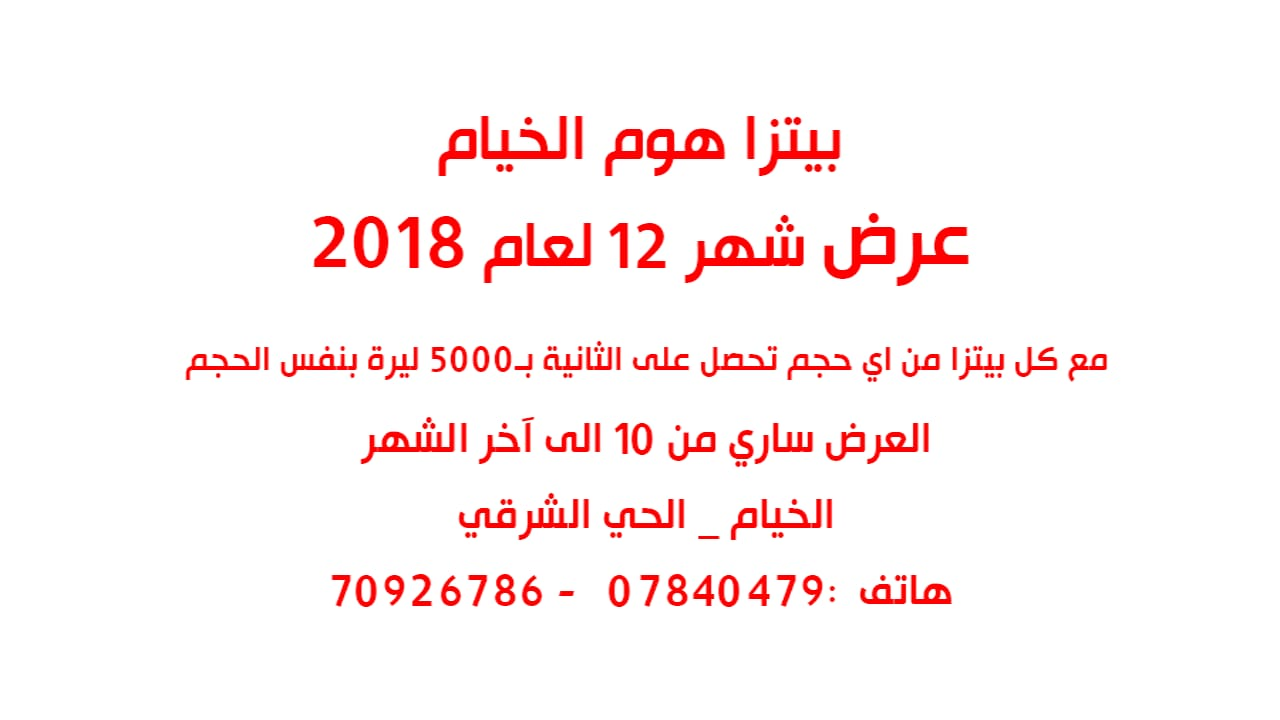 عرض مغري، يسري إبتداء من يوم غدٍ الإثنين لفاية رأس السنة، تقدمه بيتزا هوم لزبائنها في الخيام: