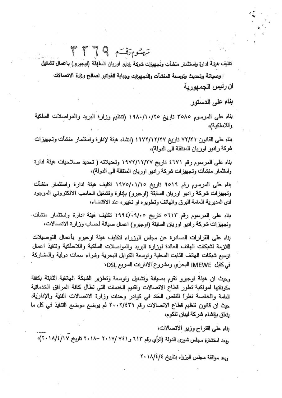 في البيان المقتضب الموجّه إلى الموظفين، إشارة إلى أنه جرى التواصل مع وزير الاتصالات «الذي دحض كل ما ورد في وسائل الإعلام، مؤكداً دور أوجيرو المستقبلي من خلال المرسوم ٣٢٦٩ الذي أعطى لأوجيرو صلاحيات تسمح لها بتشغيل وصيانة وتحديث وتوسعة المنشآت والتجهيزات وجباية الفواتير لوزارة الاتصالات»، مع إمكانية «تكليف الهيئة مهمات أخرى».