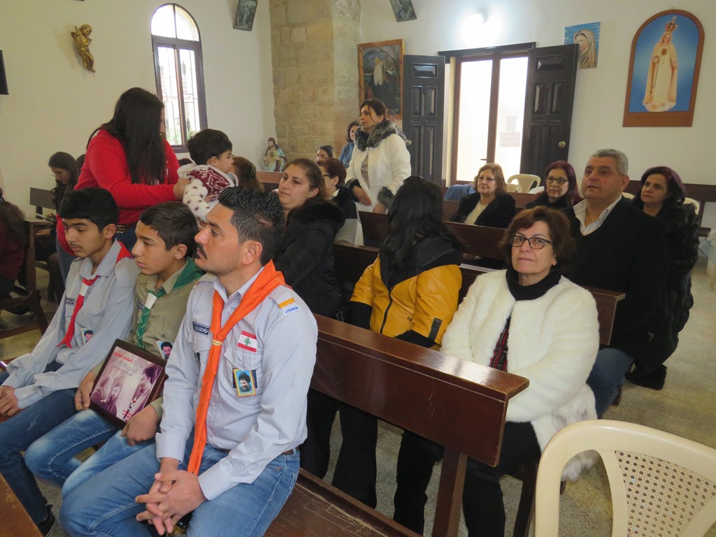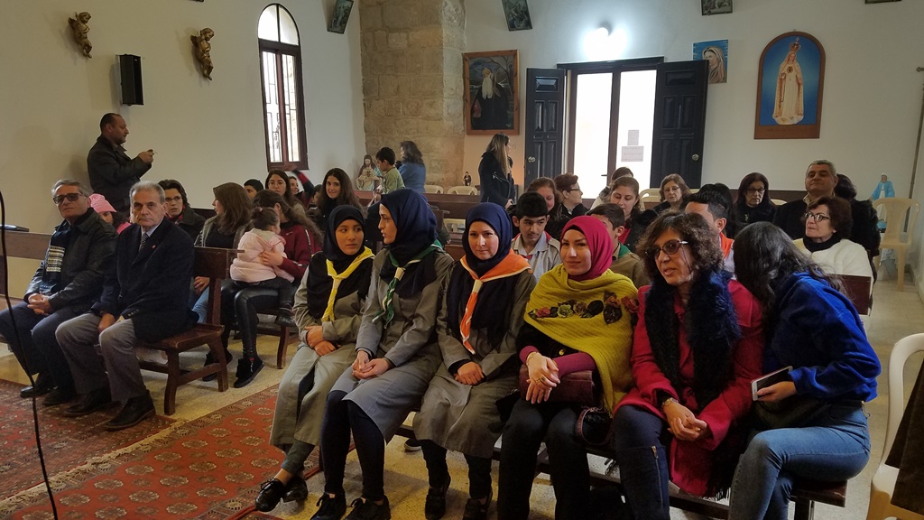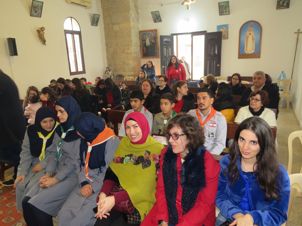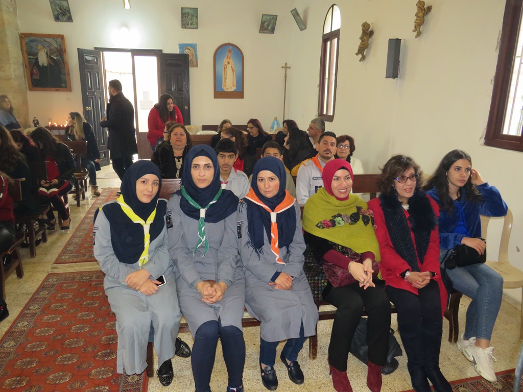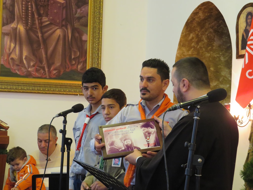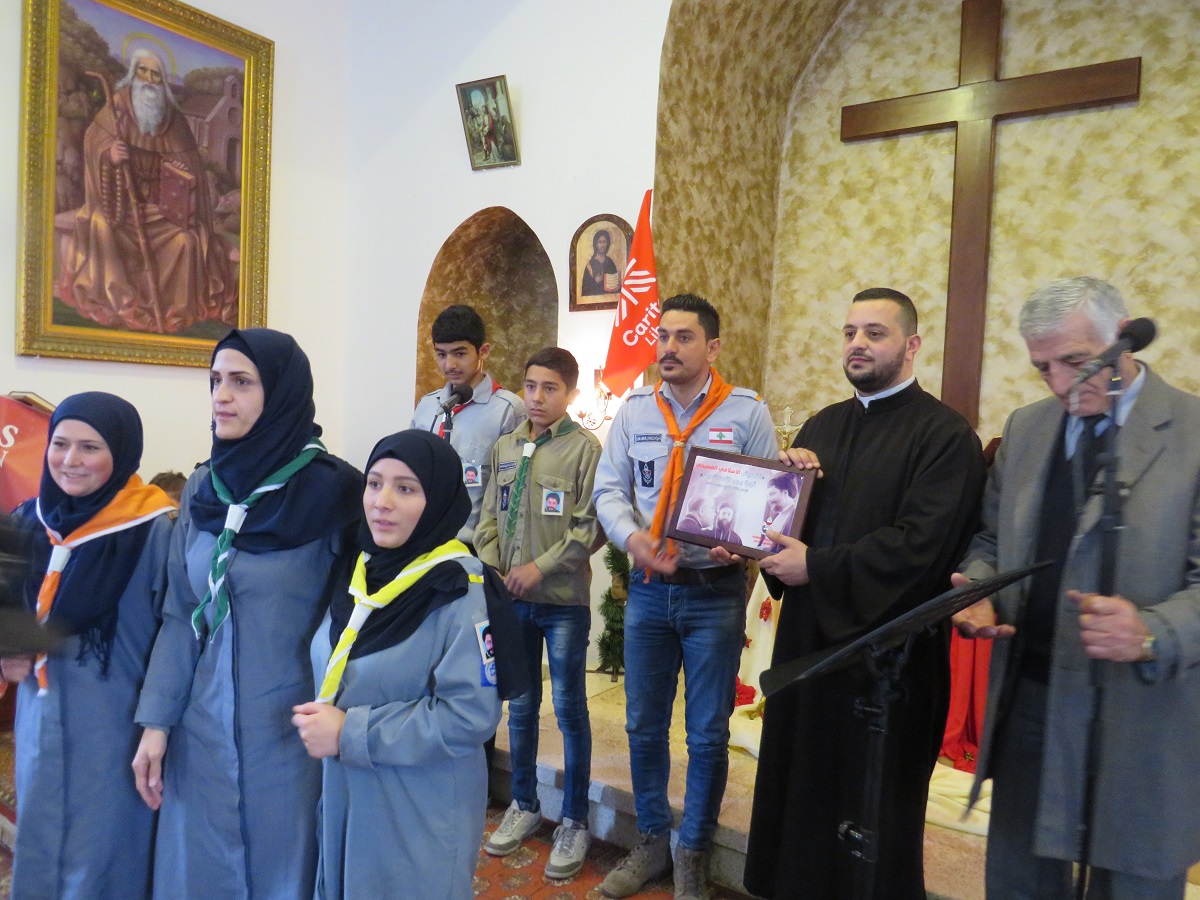 في ختام الحفل قدّمت فرقة من كشافة الرسالة للأب فرح لوحة ترمز للتعايش الوطني.