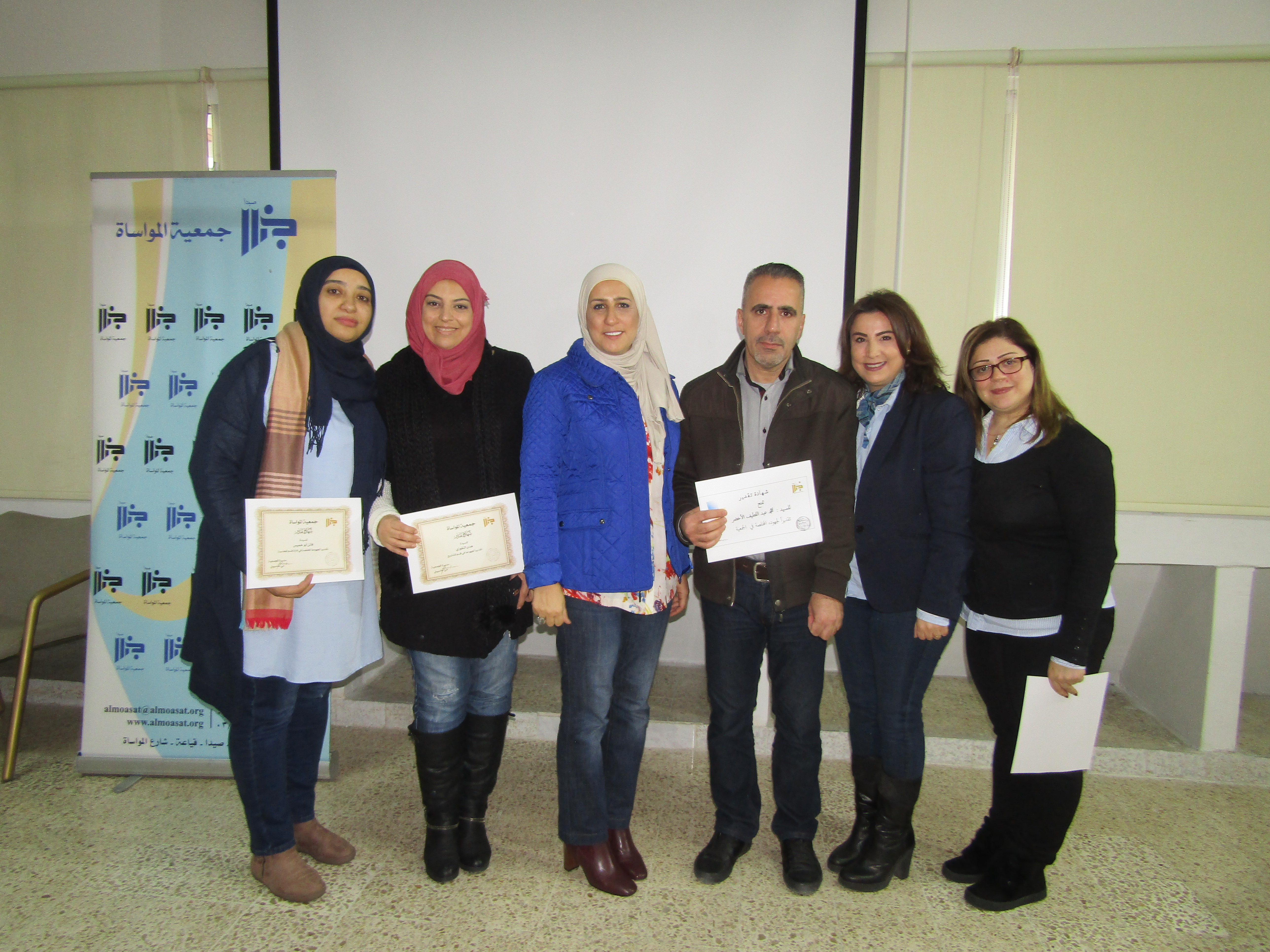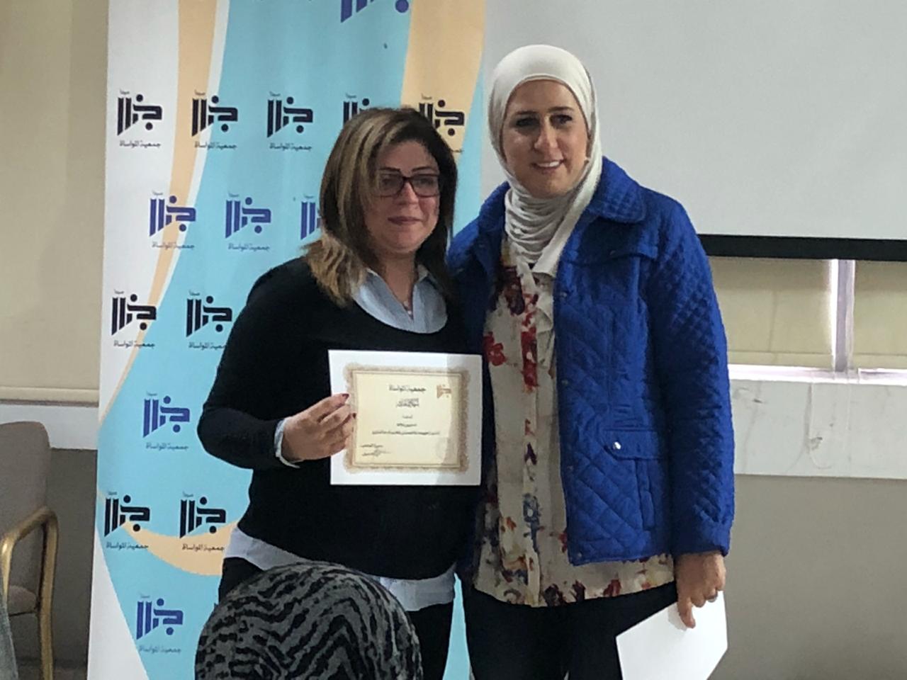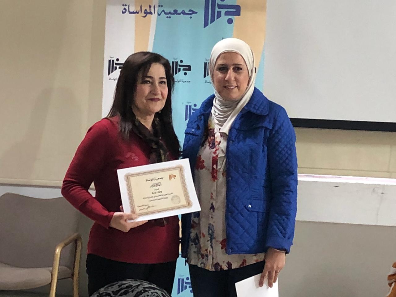 وفي كلمة لها قدّمت مديرة الجمعية الشكر إلى فريق عمل الجمعية في أقسامها كافة مؤكدة على أن الانجازات تتحقق بالتكامل والتناغم بين الأفراد، ثم سلّمت دروعاً تكريمية بمناسبة انتهاء المشروع إلى السيدتين نهى الحلبي ودريّة اليمن عرفاناً لجهودهما التطوعيّة في المشروع المشترك بين الجمعية ووزارة الشؤون الاجتماعية، كما توجهت بالشكر إلى كل من السيدات العاملات على المشروع سهام الرواس وهنية الرواس ووفاء غزلة متمنية لهن دوام النشاط والعطاء.