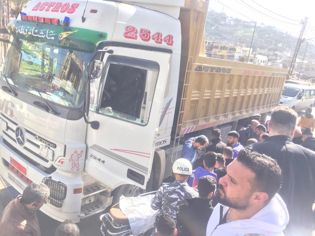 دهست شاحنة كبيرة مواطنة سورية في مدينة النبطية مما ادى الى مقتلها على الفور>