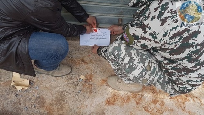أقفلت دورية من مركز أمن عام مرجعيون الإقليمي وشعبة معلومات الجنوب دائرة الأمن القومي، محل تنجيد وخياطة مفروشات بالشمع الاحمر، يديره بطريقه غير شرعية السوري ح. م في بلدة الخيام - قضاء مرجعيون، وذلك بناء لاشار ة النيابة العامة الاستئنافية في النبطية.