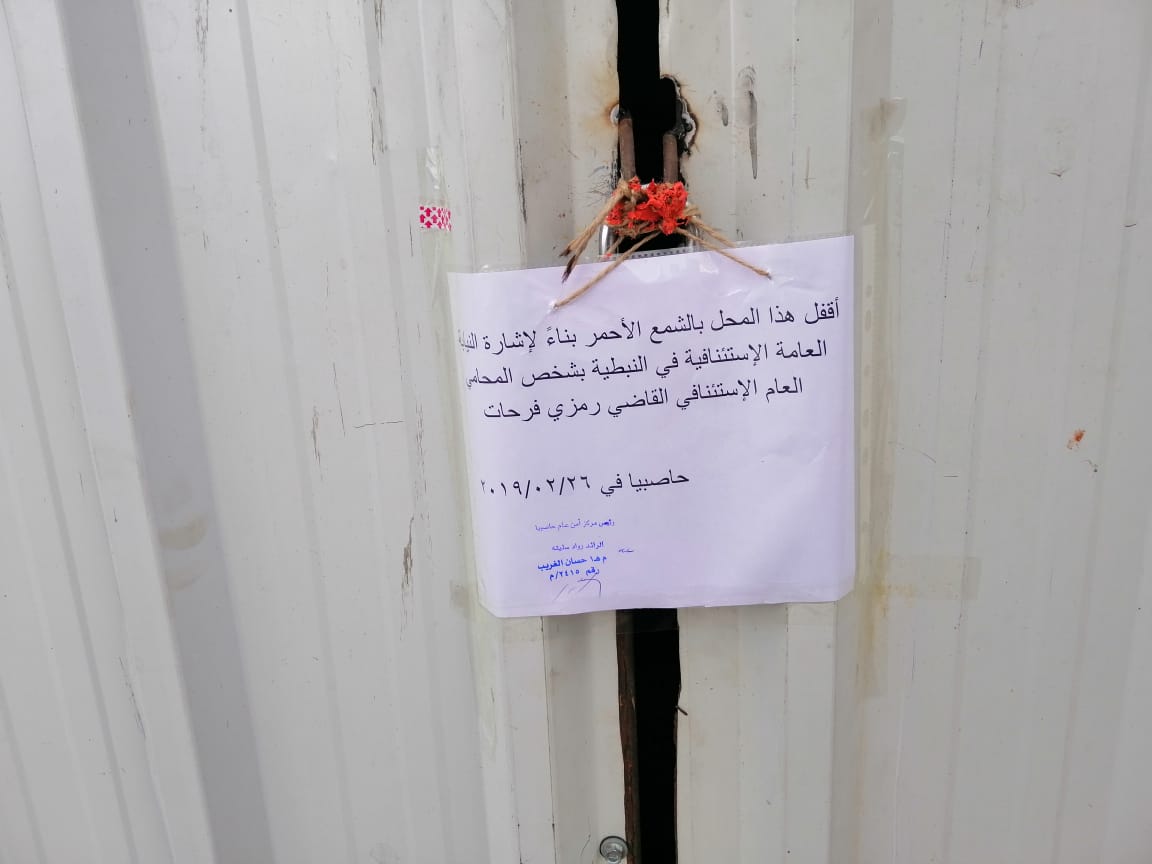 أقفل الامن العام اليوم محل حدادة افرنجية في بلدة عين قنيا قضاء حاصبيا بالشمع الأحمر كونه مخالف لنظام العمل بناءاً لإشارة القضاء المختص.