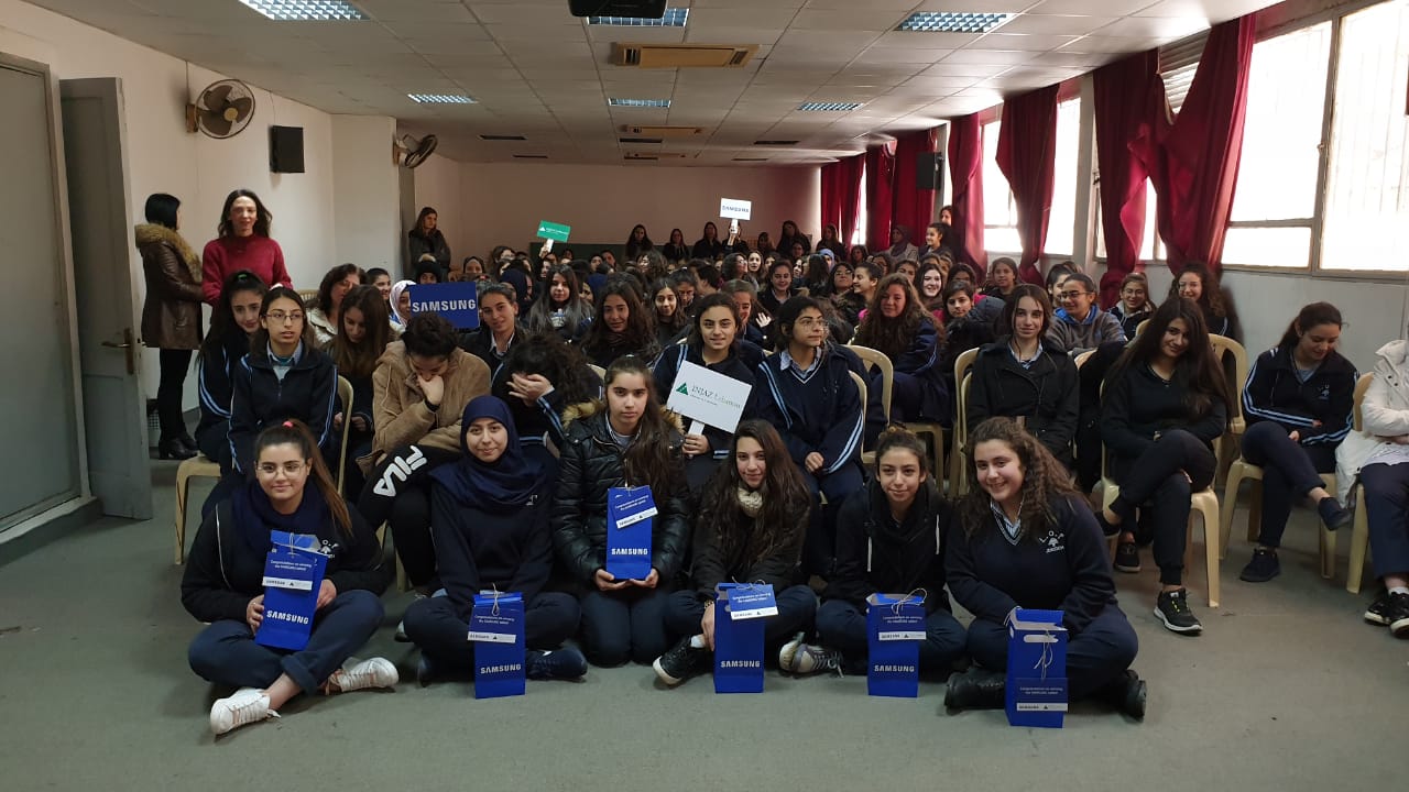 وفي هذا الإطار، اجتمعت السيدة دانا دحبور، مديرة قسم التنمية الإجتماعية في شركة "سامسونج" المشرق التي حضرت من مقرّها في عمّان، الأردن، والآنسة غاسيا بربريان، مديرة قسم التسويق في شركة "سامسونج" لبنان، يومي الخميس 28 شباط/فبراير 2019 والجمعة 1 آذار/مارس 2019، وذلك لمنح ألواح "سامسونج" الإلكترونية إلى تلاميذ ثانوية سيّدة البلمند، وهي مدرسة خاصّة في قضاء الكورة شمالي لبنان، كما إلى تلاميذ ثانوية الجديدة الرسمية، بيروت، في هذين التاريخين على التوالي.