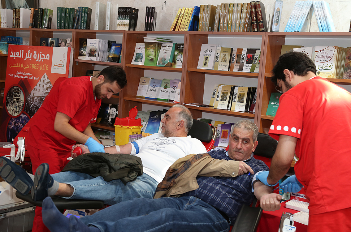 بمناسبة ذكرى مجزرة بئر العبد التي وقعت في العام 1985، والتي استهدفت محاولة اغتيال المرجع السيد محمد حسين فضل الله (رض)، ووفاءً لدماء الشهداء والجرحى، أقامت لجنة أصدقاء مسجد الحسنين (ع) في حارة حريك حملة تبرع بالدم تحت عنوان "دمك نبض الحياة"، بالتعاون مع الصليب الأحمر اللبناني.