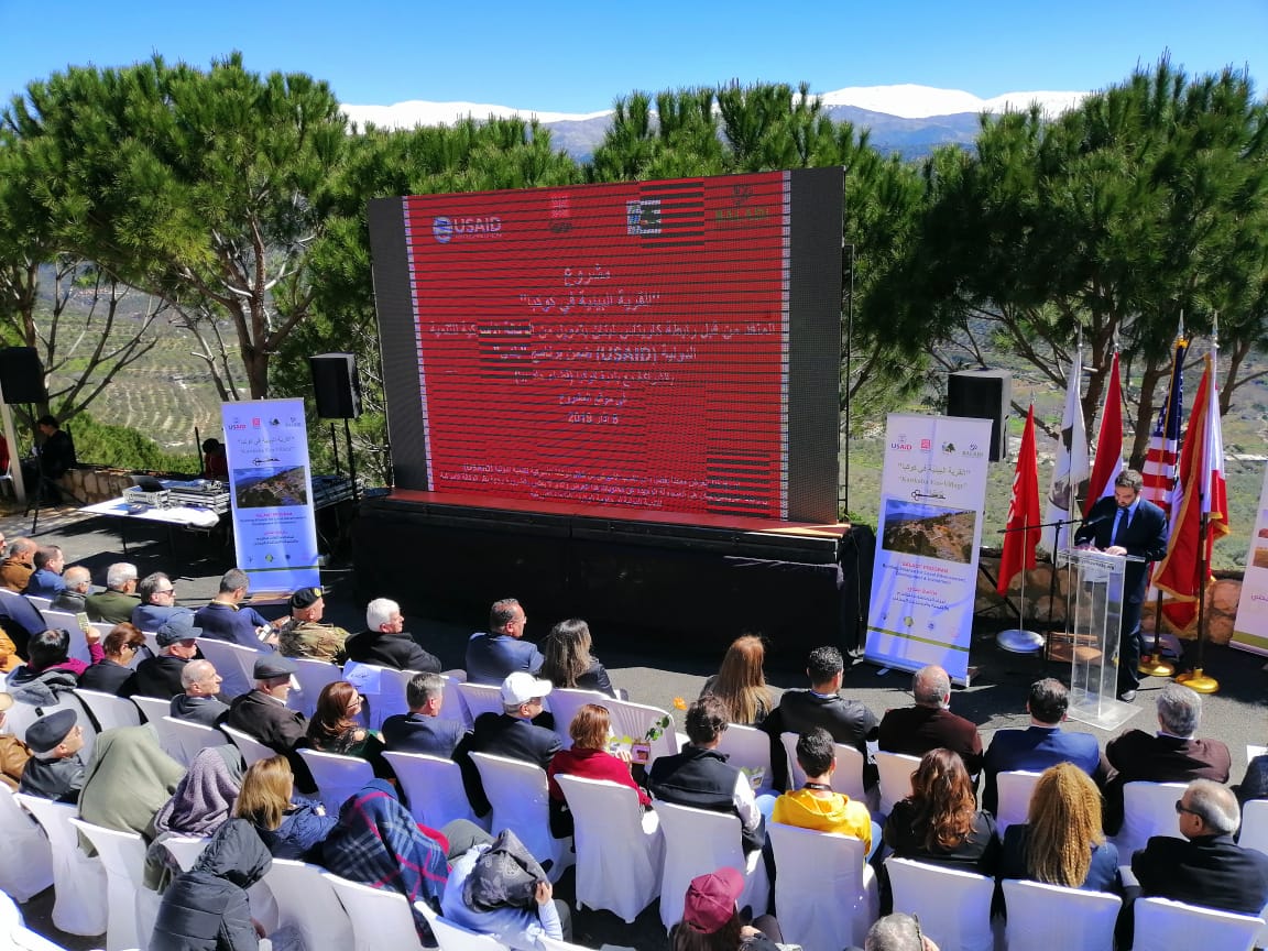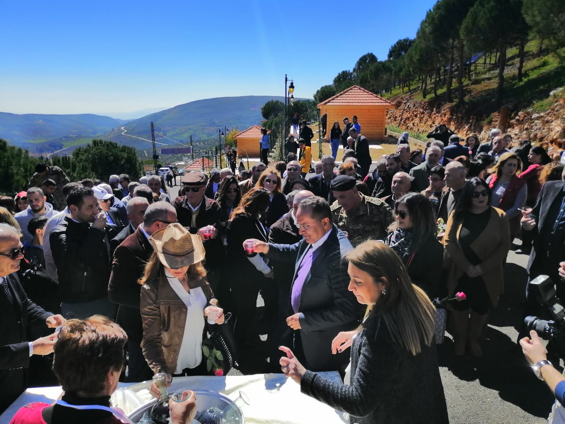 بدأ الاحتفال بالنشيدين الوطني اللبناني والاميركي ثم كلمة لرئيس البلدية الذي شكر كل من ساهم في انجاز هذا المشروع السياحي الحيوي لابناء البلدة والجوار متعهدا بالمزيد من المشاريع التي تساهم في اعادة الحياة وانعاش الحركة الاقتصادية والاجتماعية والسياحية في البلدة. وتحدث بعده كل من ممثل عن كاريتاس لبنان ووكالة التنمية الاميركية.