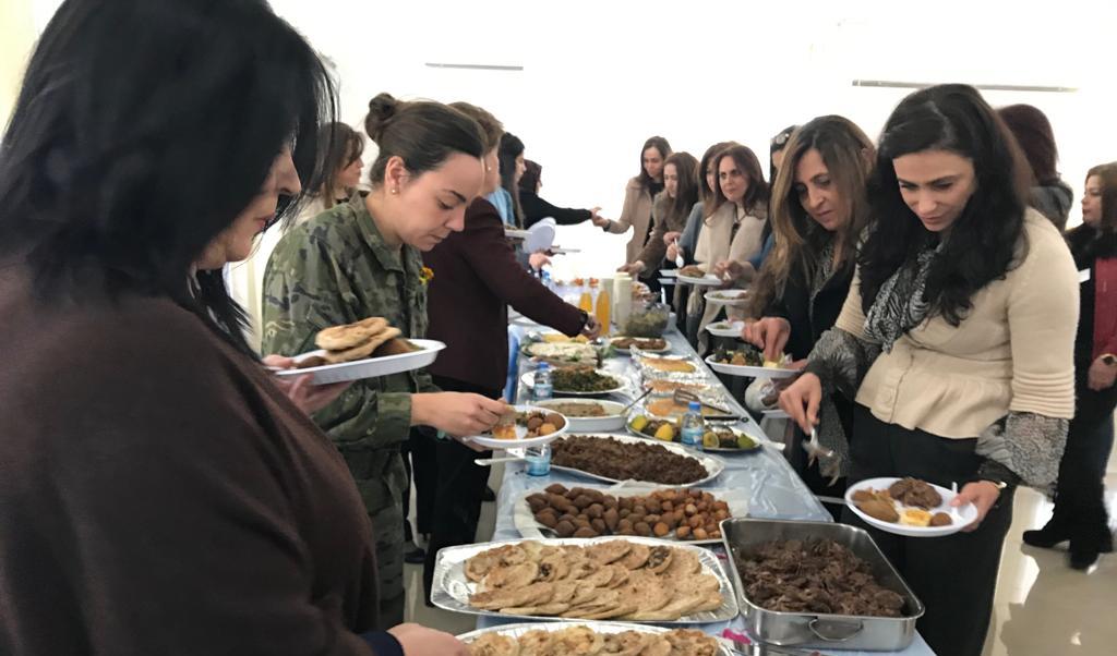 بمناسبة اليوم المرأة العالمي تم لقاء على الغداء بين الجمعيات النسائية في منطقة مرجعيون حاصبيا بدعوة من قوات الطوارىء العاملة في الجنوب اللبناني بتنسيق من جمعية سيدات الخيام للتنمية دعيت الجمعيات الى غداء تراثي وتقليدي من كل البلدات الممثلة وتميز اللقاء بجو ودي وتعارف بين جمعيات المنطقة الواحدة، وحضرن اكلات ستي من فطاير عالصاج الى الزناكل والكبة المقلية والمجدرة والتبولة والعصورة وكبة البندورة والبقلة فكان الكل يتذوق الاطباق المتنوعة وشاركت الكتيبة الاسبانية بالطعام التقليدي الاسباني .