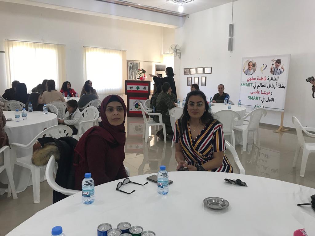 بحضور الاستاذ حسين خريس ممثلا لرئيس بلدية الخيام الدكتور علي عبدالله والسيد عاطف ابو عازار ممثلا للنادي الثقافي والسيد فؤاد رمضان رئيس تحرير مجلة كواليس وبطلة التسلق روان دقيق والجمعيات النسائية في منطقة مرجعيون حاصبيا. جمعية سيدات المحبة (مكتب انور الخليل) ممثلة بالسيدة غنوة عماشة والسيدة امية الصفدي ، جمعية تنظيم الاسرة مثلة بالسيدة غادة الكاخي، جمعية سيدات الماري ممثلة بالسيدة ربى العيسمي، تعاونية كوكبا السيدة رينا ومثلت السيدة امل حوراني مديرة التعاونية الزراعية وتربية النحل في دير ميماس كما شاركت الشابات المسيحيات من مرجعيون ،جمعية افزي ممثلة بالآنسة ميسا نهرا. جمعية حرمون مع السيدة صالحة من ابل السقي وجمعية منك الحياة ممثلة بالسيدة سهى القيس ومثلت جمعية تمكين المرأة في الكفير السيدة سلمى صقر واعتذرت جمعية شؤون المرأة وجمعية ورود لارتباطهن بمواعيد مسبقة .