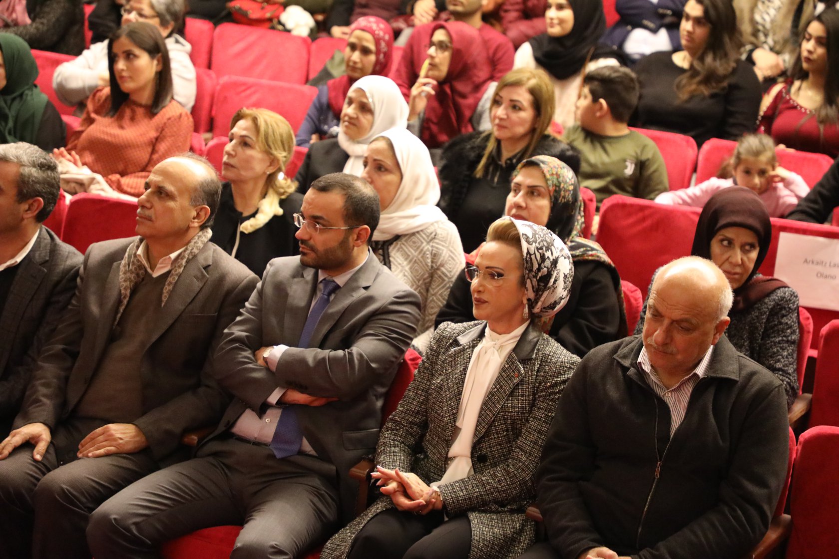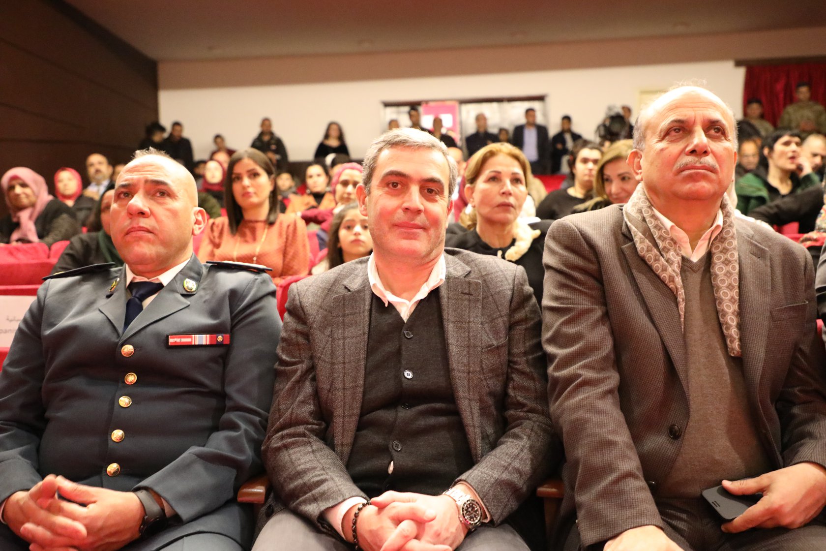 واستهل الاحتفال بعزف موسيقي لفرقة أليسار الشبابية وعرض فيلم عن المسرح الوطني اللبناني وعرض دبكة لفرقة جمعية تيرو للفنون، وذلك بحضور معالي وزير الثقافة اللبنانية الدكتور محمد داوود داوود ،وعقيلة رئيس مجلس النواب السيدة رندة بري ورئيس اتحاد بلدية صور حسن دبوق وممثلاً عن قائد الجيش اللبناني العماد جوزيف عون، وممثل عن المدير العام للأمن العام اللواء عباس إبراهيم وممثلاً عن المهندس ناصيف سقلاوي ونقيب ممثلي المسرح والسينما والإذاعة والتلفزيون وعائلة الراحلة سهام ناصر وحشد من الأهالي والطلاب والفعاليات والمهتمين .