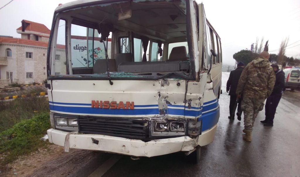 إصيب طالبان بجروح طفيفة في حادث سير مؤسف وقع صباحاً على طريق عام حولا بين باص مدرسة ينقل الطلاب وجيب تابع للكتيبة النيبالية العاملة ضمن قوات الطوارئ الدولية.