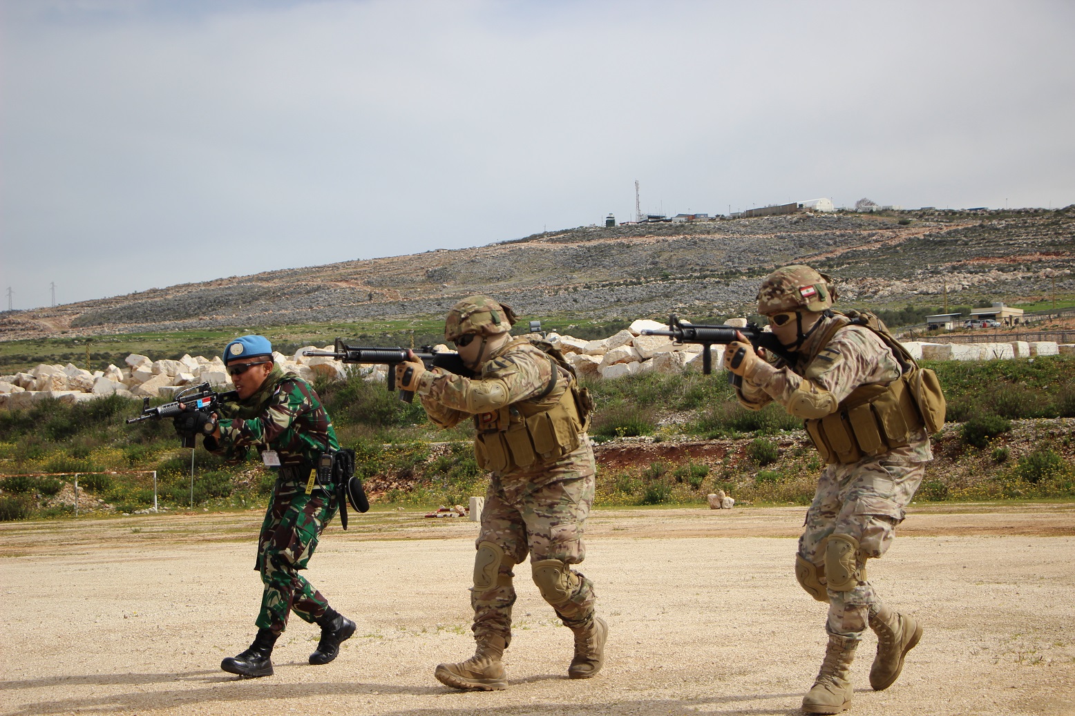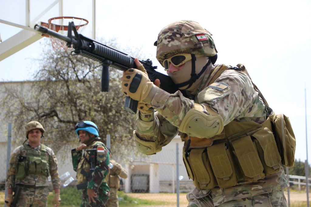 اما التدريب المشترك على القتال في المدن مع الجيش اللبناني، تم بمشاركة عدد ٢٦ جندي من مختلف الجنسيات، منهم ١٢ جندي من الجيش اللبناني. في خلال هذه الدورة التدريبة تم عرض أساسيات القتال في المدن للمشاركين. أصبح التدريب على القتال في المدن جزء أساسي لكل القوات المسلحة في كل العالم ويتماشى بشكل أساسي لكي نكون مستعدون لكل التهديدات والازمات التي نواجها بشكل متزايد اليوم. كان من ضمن التدريب جزء عملي حول تقنيات الحركة والاختراق بالإضافة الى مداهمات المنازل والغرف.