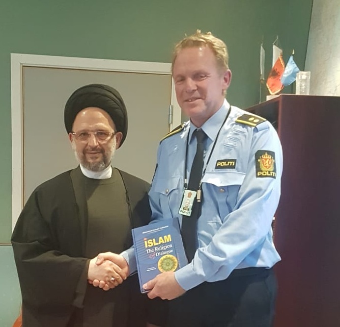 كما التقى سماحته رئيس دائرة الشرطة في أوسلو، وكان بحث في أهمية تعزيز العلاقة بين المهاجرين العرب والمسلمين وكل الفئات في النروج، وتعميق كلّ جوانب الحوار التي تقود إلى مزيد من التعارف والتفاهم والتنسيق في كل ما من شأنه خدمة النروج وأهله، وتحقيق المصالح المشتركة للجاليات العربية والإسلامية مع النروجيين.