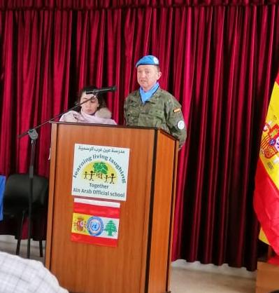 اقيم صباح يوم الاربعاء ٢٧ أذار في مدرسة عين عرب الرسمية احتفال مع قوات اليونيفيل بعنوان ” اليونيفيل تجمعنا ” بمناسبة انهاء مشروع تأهيل صفوف الروضات المقدم من الكتيبة الاسبانية للمدرسة بحضور فعاليات اجتماعية و تربوية .