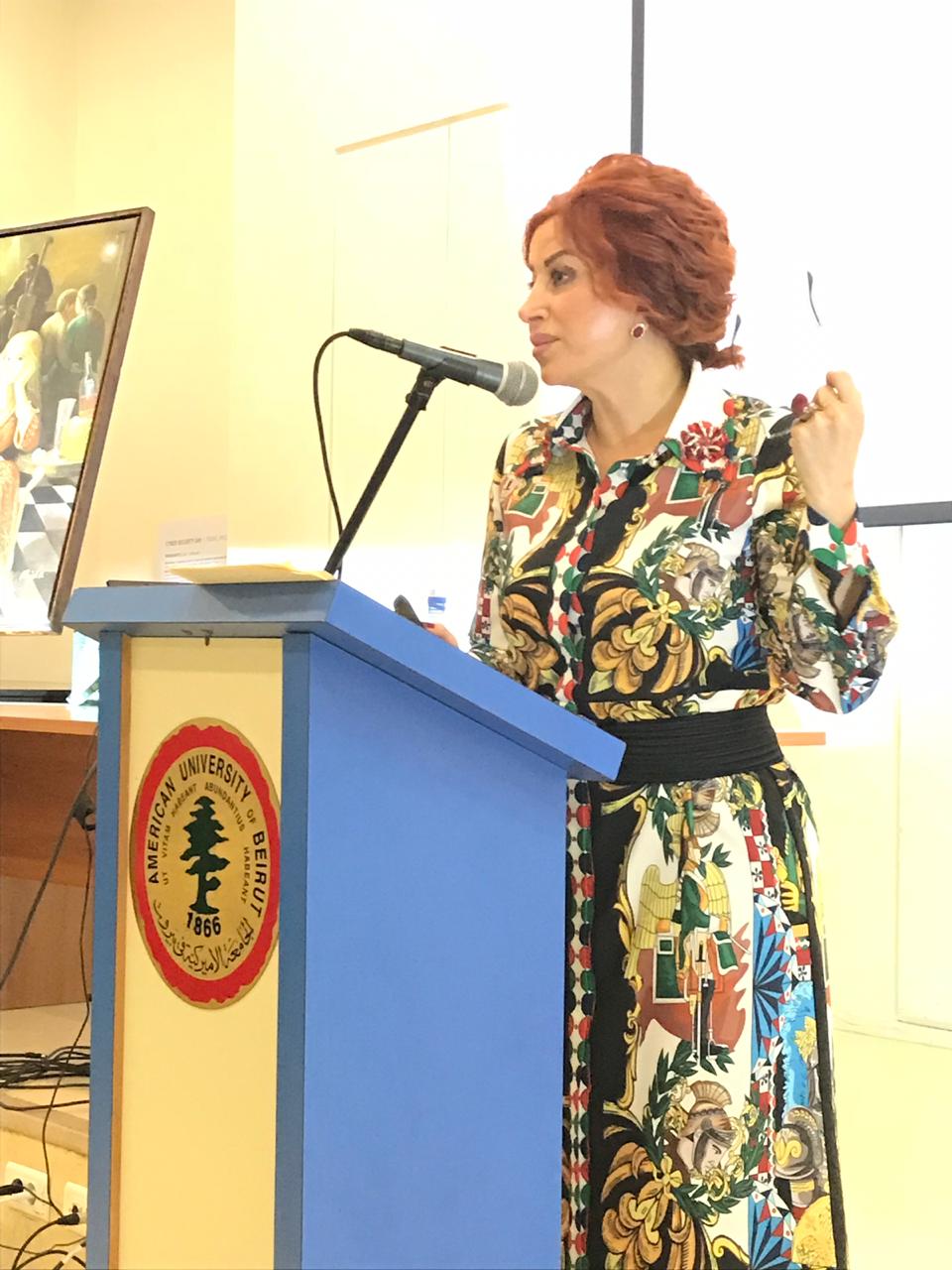 بحضور حشد من الاساتذة والفنانين التشكيليين والاعلاميين والمهتمين حاضرت التشكيلية مجد رمضان مساء الاربعاء في الجامعة الأميركية في بيروت عن "الرسام وتجليات الهوية الفنية"، وقالت: "ان ترسم الحمام فأنت رسام واقعي ،أما ان ترسم الهديل فأنت رسام تجريدي، أن ترسم الحمام والهديل والحب والخيال، فأنت كمن يمزج ارواحا متعددة حيث ترتقي الحواس، فالجمال لا يرضى بغير الكمال".