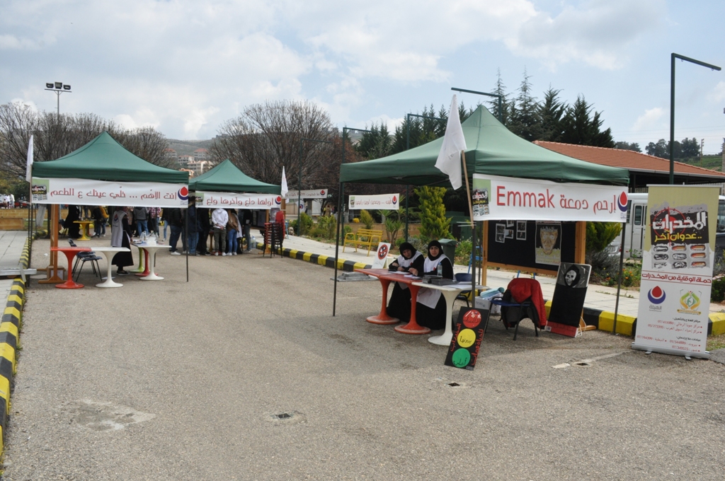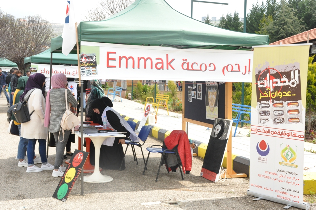 بعد ذلك اقامت الهيئة الصحية ورش ومعرض عن مخاطر المخدرات في خيم اقيمت خصيصا في ملعب الجامعة ، حيث شرح مندوبين من الهيئة للطلاب عن مخاطر التدخين والمخدرات والكحول ومشروب الطاقة، اضافة الى اجراء فحوصات مخبرية خاصة بالتدخين والكحول.
