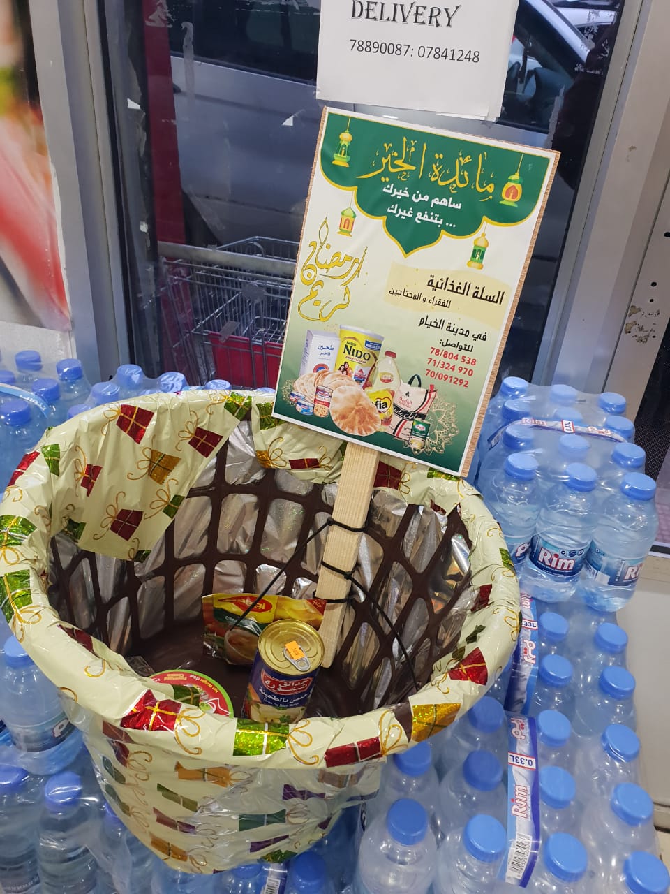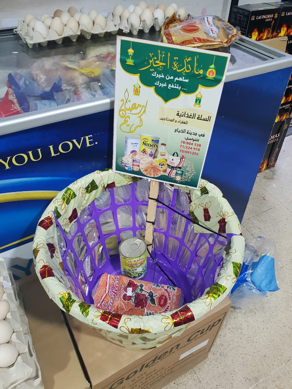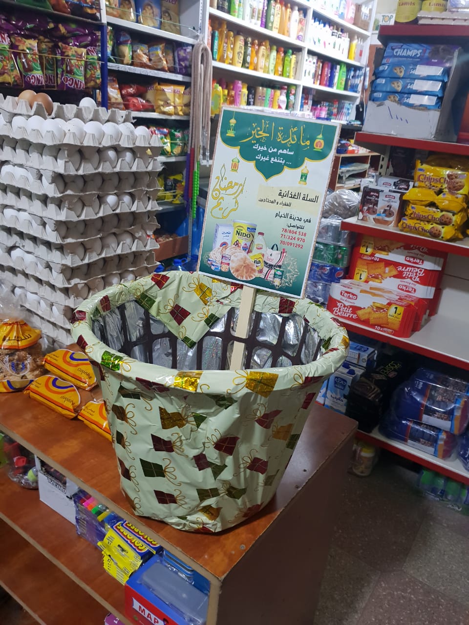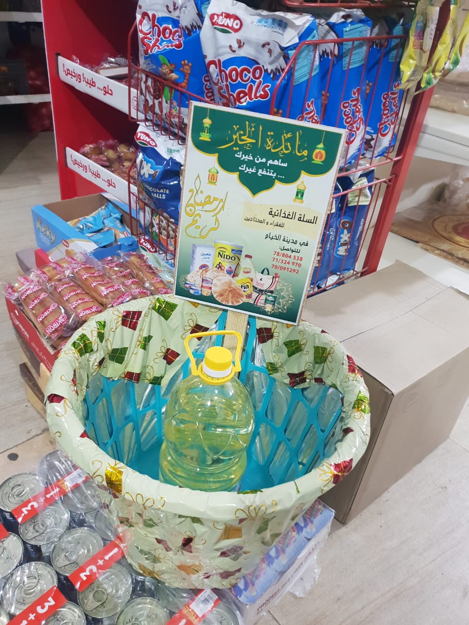 عند شراءك لأغراضك المنزلية من الاستهلاكيات و المحلات، اشتري و ساهم في السلة الغذائية بما تيسر من خيرك ليصل ليد الفقير في بلدتك.