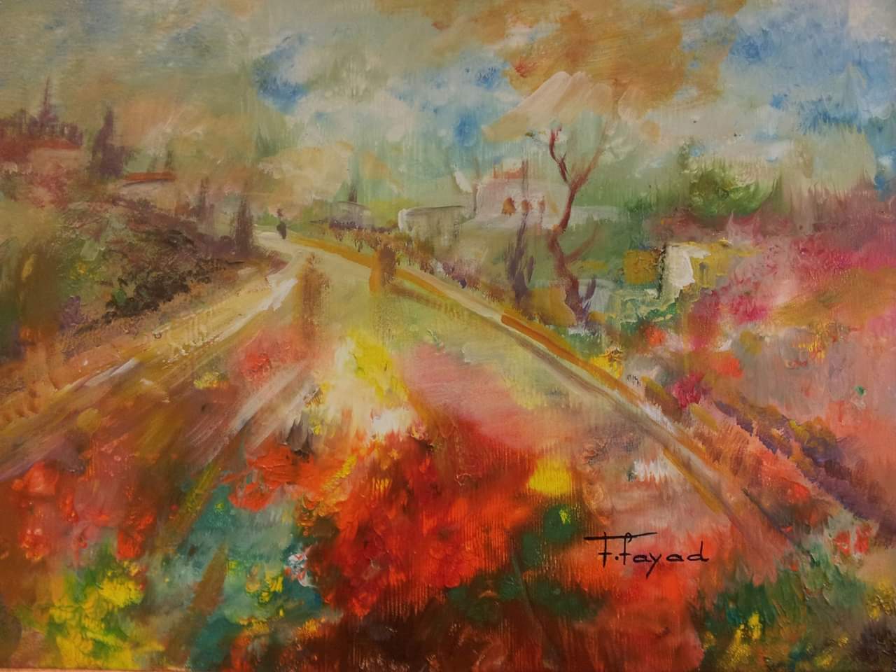 فريال فياض فنانة ولدت من رحم الأرض .صنعت ريشتها من خشب الورد وحملت في قلبها عطر الجنوب ورسمت على وجه السنين تجاعيد الحقول.