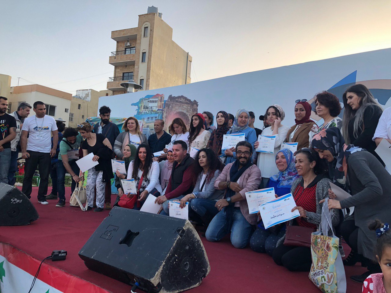بدوره شكر رئيس لجنة البروتوكول في البلدية وليد الطويل الفنانين المشاركين، قبل أن يتم منحهم "شهادات مشاركة" في سمبوزيوم الرسم، وقدمت التشكيلية العراقية دينا عبدالقادر باسم "ملتقى الألوان" الفني لوحة خاصة للمنظمين في ساحة القسم.