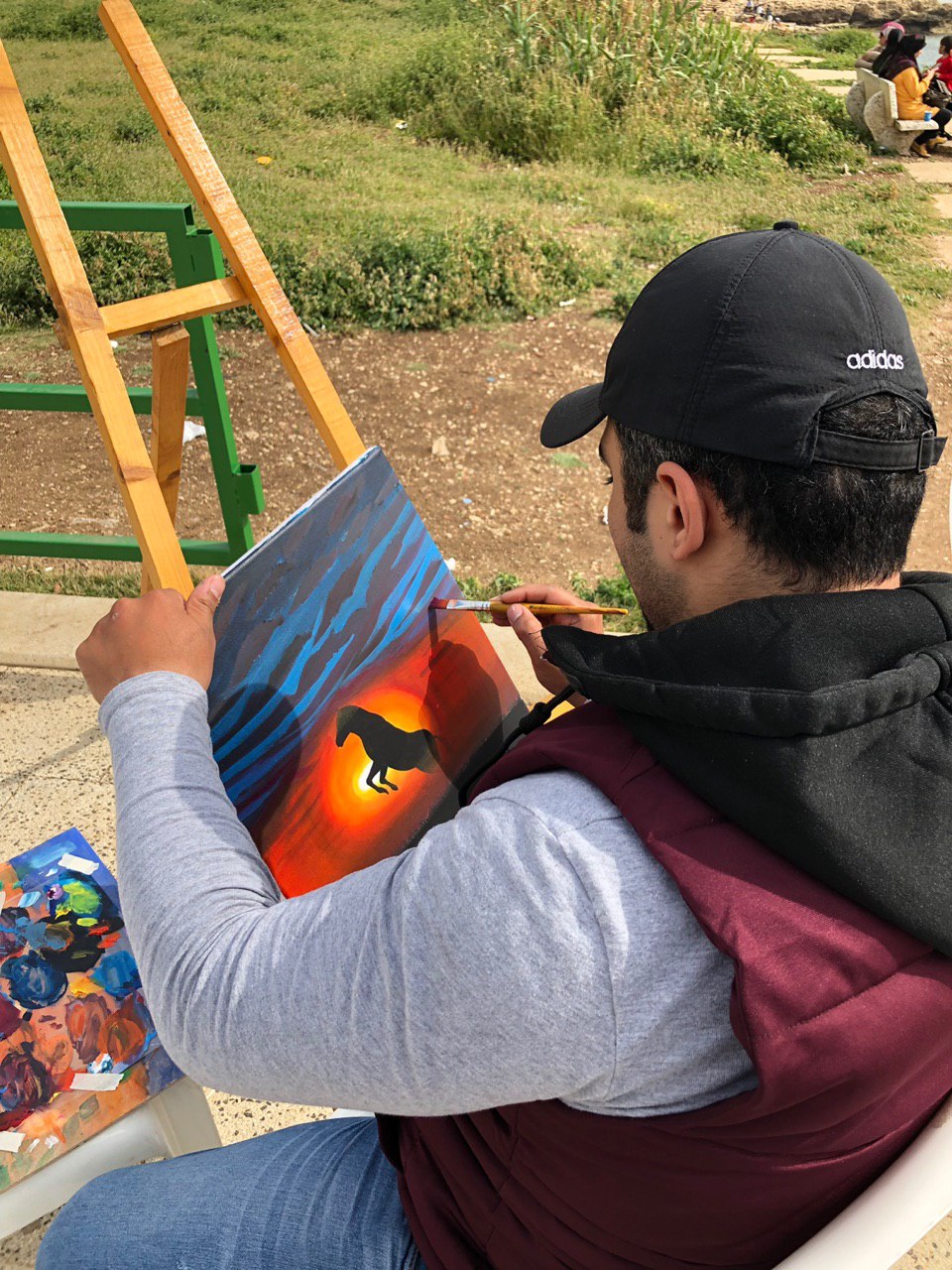 وتوزع الفنانون التشكيليون على الكورنيش وحدائقه، حيث استوحوا مواضيع لوحاتهم من أجواء البحر والمناظر الطبيعية والمعالم الأثرية، وتخللت النشاط زيارة لوفد من السياح ضمن الجولات السياحية المقررة من اللجنة المنظمة للمهرجان.