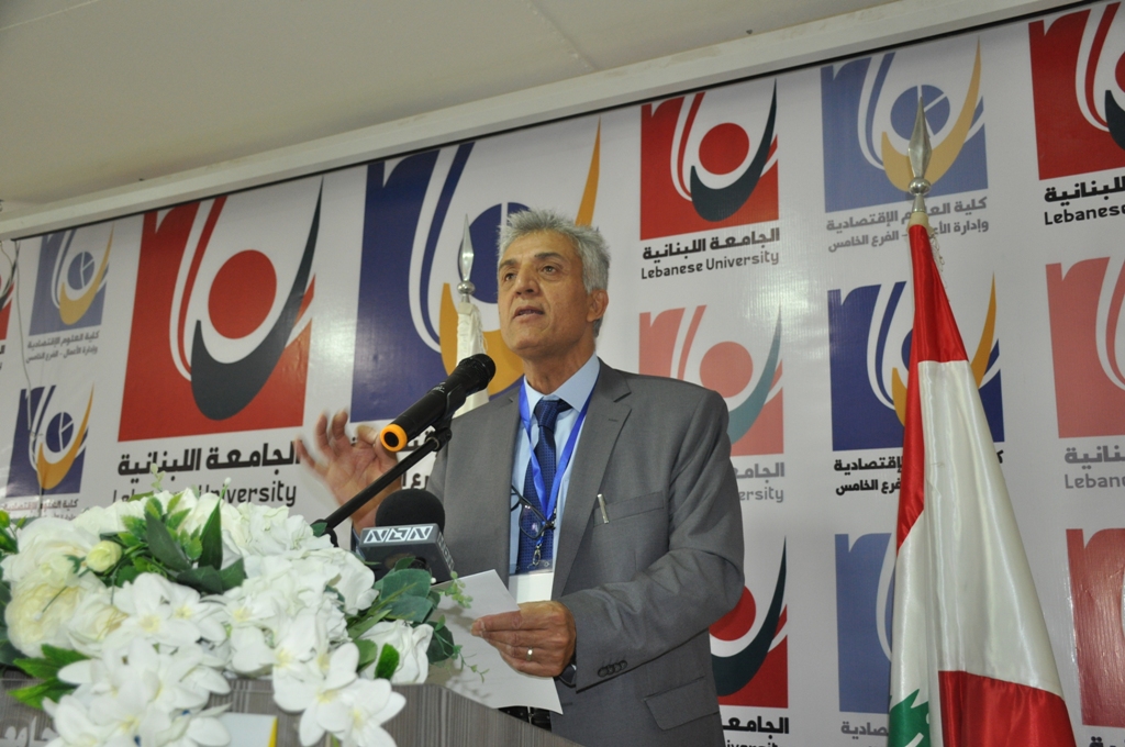 كلفني رئيس الجامعة اللبنانية البروفسور فؤاد ايوب أن أنقل إليكم تحياته وتقديره للجهود التي تبذلونها، وتمثيله في رعاية هذا المؤتمر العلمي الأول لكلية العلوم اﻹقتصادية وإدارة الأعمال في النبطية والمنظَّم من قبل الفريق العلمي (GAREB) الذي أعلِنَ عنه رسمياً في 1 أيار 2018. وبعد مرور سنة استطاع هذا الفريق بقيادة مديره التنفيذي ورئيس المؤتمر البروفسور محمود مراد، القيام بهذا اﻹنجاز وإنجاحه على الصعيدين العلمي والتنظيمي. من القلب أوجه له تحية وللباحثين فرداً فرداً من الكلية وخارجها، كما وأشُدُّ على أياديهم مُعبِّرا لكل فرد منهم عن خالص شكري وامتناني لجهودهم والتزامهم بقيَم الأستاذ الجامعي الأصيل الذي يرى في الجامعات منارة علمية وفكرية وأساساً لبناء وطن يسود فيه التخطيط السليم في كلِّ مرافق الحياة ودعم الجهود الخيِّرة بوضع اﻹنسان المناسب في المكان المناسب.