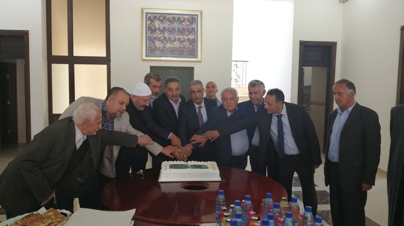 وفي الختام تم وضع حجر اساس للمنشأة وازاحة الستار عن المشروع، وقطع قالب حلوى بالمناسبة.
