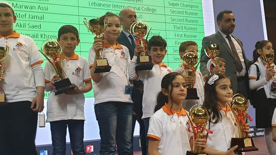 اشارة الى ان الطفلة غريتا عاصي (9 سنوات) في الصف الرابع ابتدائي تبارت مع الصف السادس ابتدائي وفازت بالبطولة.