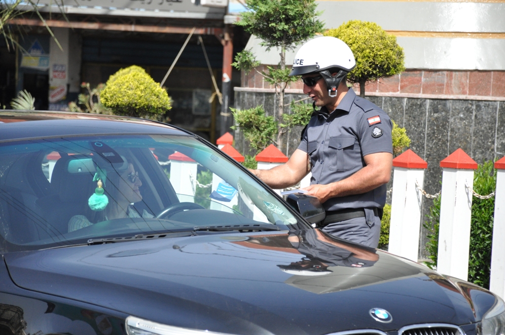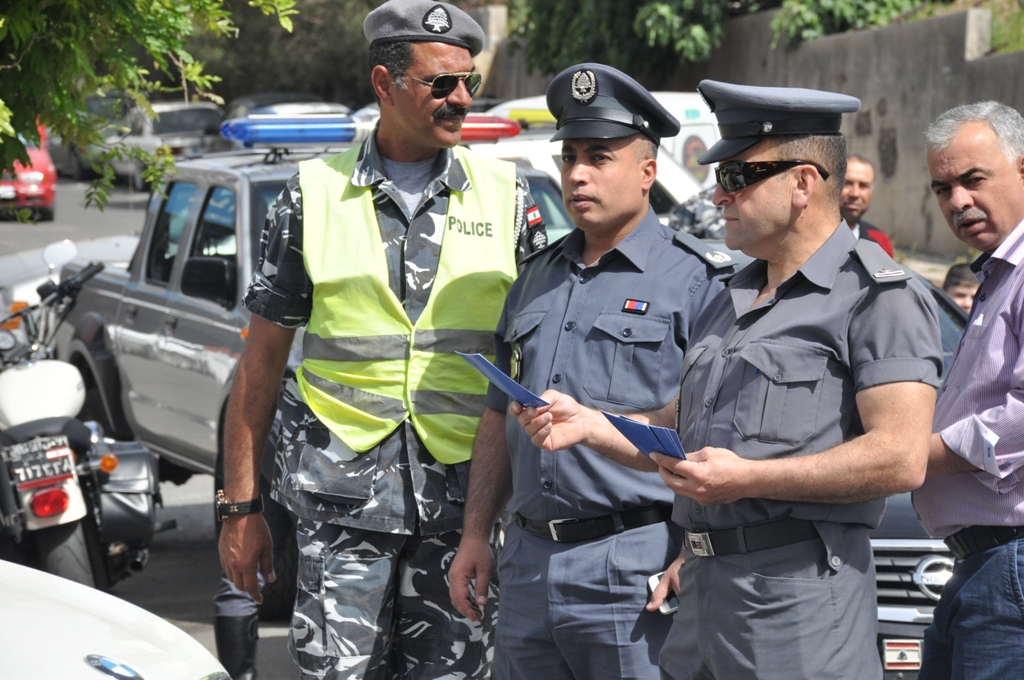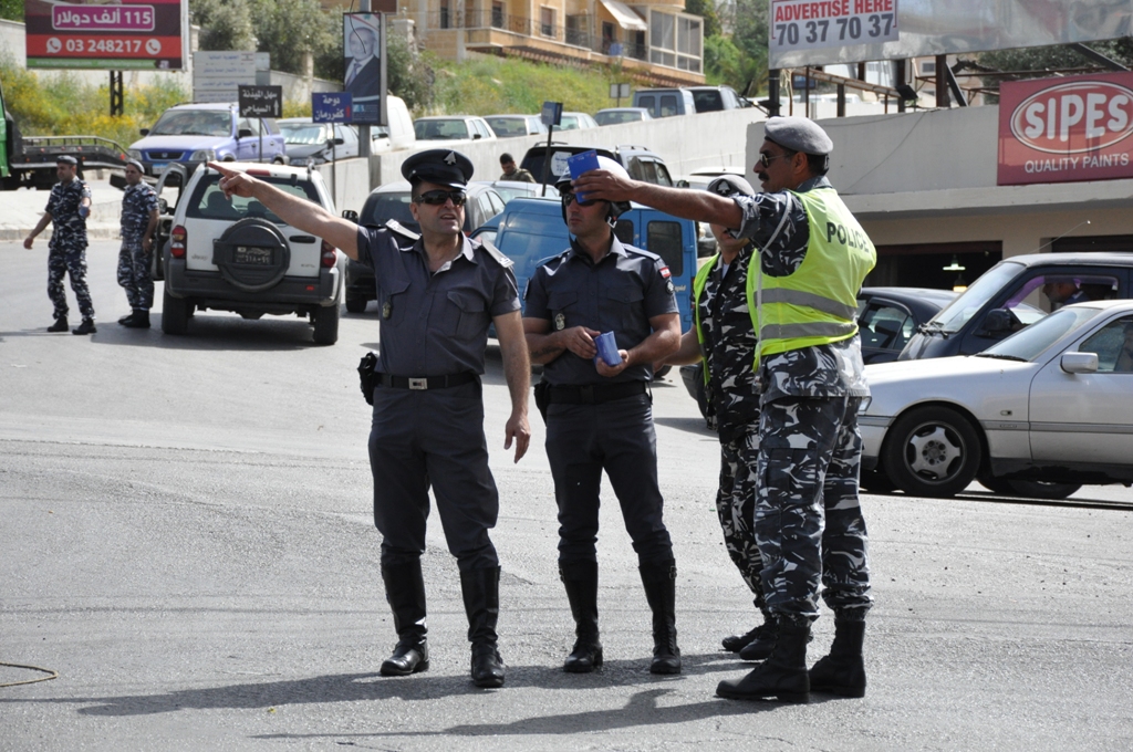 واقيمت الحواجز على مداخل مدينة النبطية وعلى طول اوتوستراد النبطية - الزهراني ووزع عناصر قوى الامن الداخلي على الحواجز منشورات حول قانون السير الجديد.