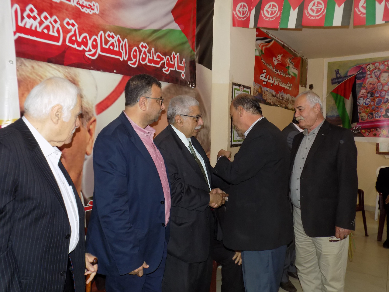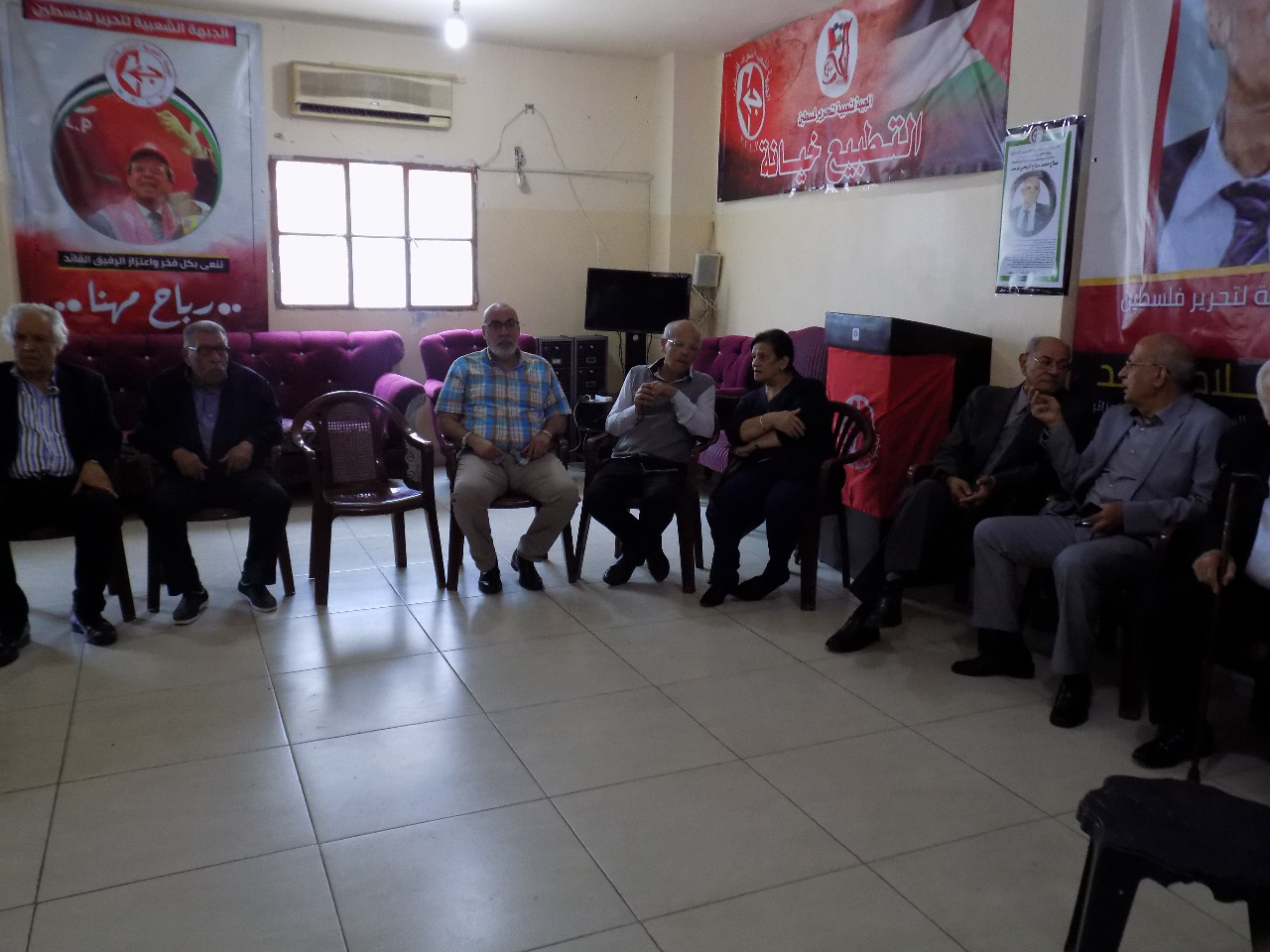 استقبلت قيادة الجبهة الشعبية لتحرير فلسطين يوم الخميس 9/5/2019 الحشود الغفيرة لتقديم التعازي لرفاقهم في النهج، والجبهة والثورة، وفي مقدمة المستقبلين عضو المكتب السياسي للجبهة الرفيق مروان الفاهوم، ومسؤول الجبهة في لبنان الرفيق مروان عبد العال، بالإضافة إلى قيادة فرع لبنان.