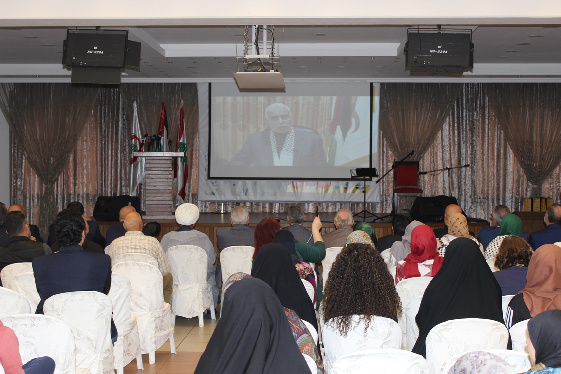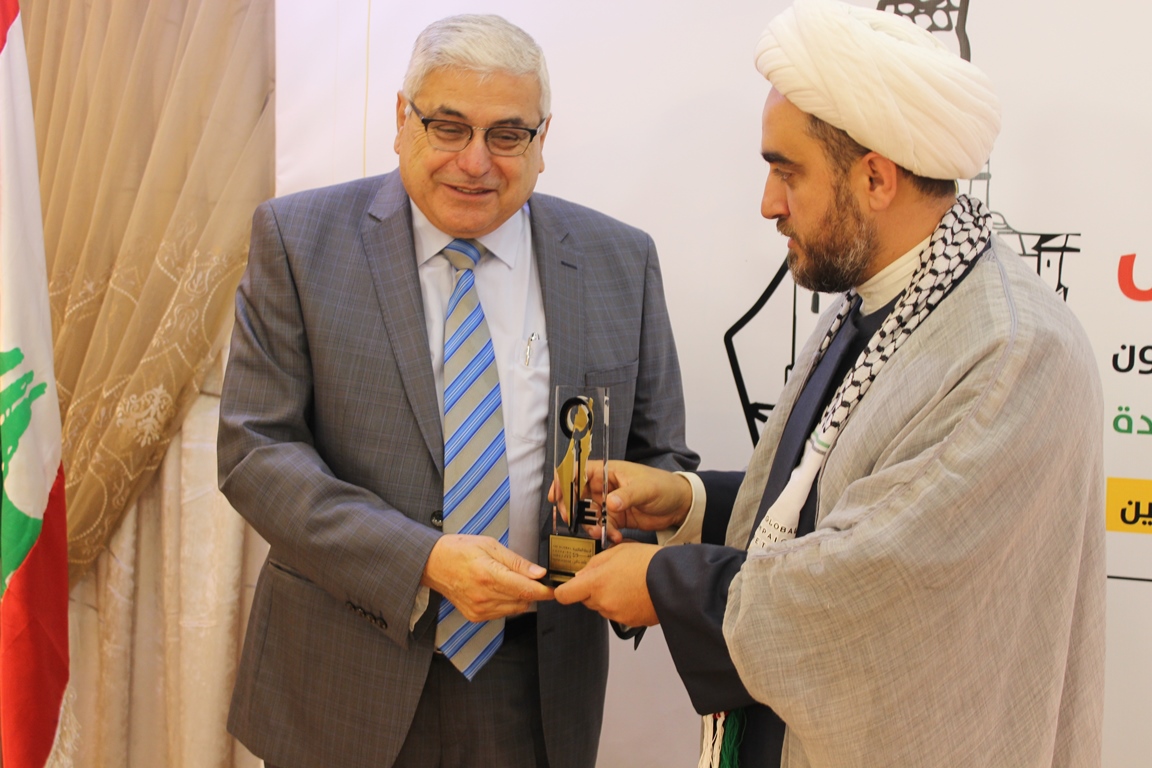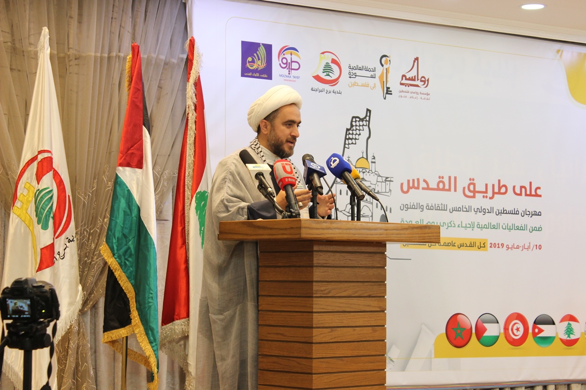 وتلاه كلمة المنسق العام للحملة العالمية للعودة الى فلسطين سماحة الشيخ يوسف عباس الذي لفت الى اهمية الفن وتأثيره وأهمية توجيه الحالة الثقافية العالمية لمركزية الصراع العربي الاسرائيلي.