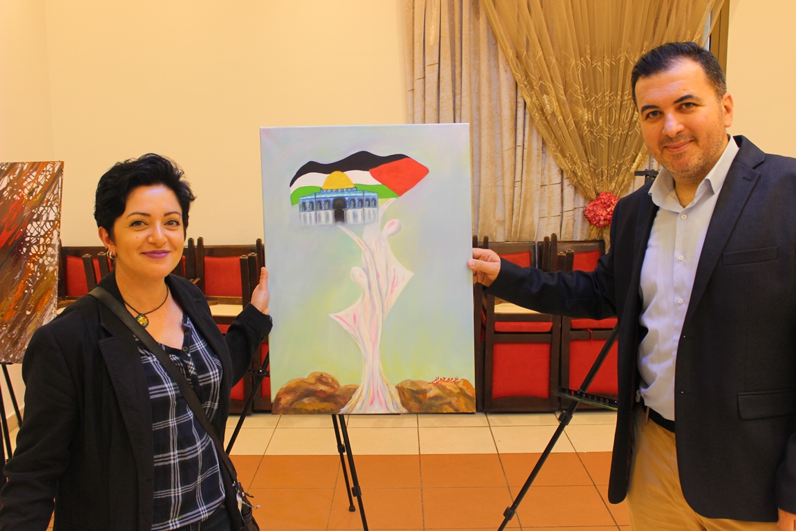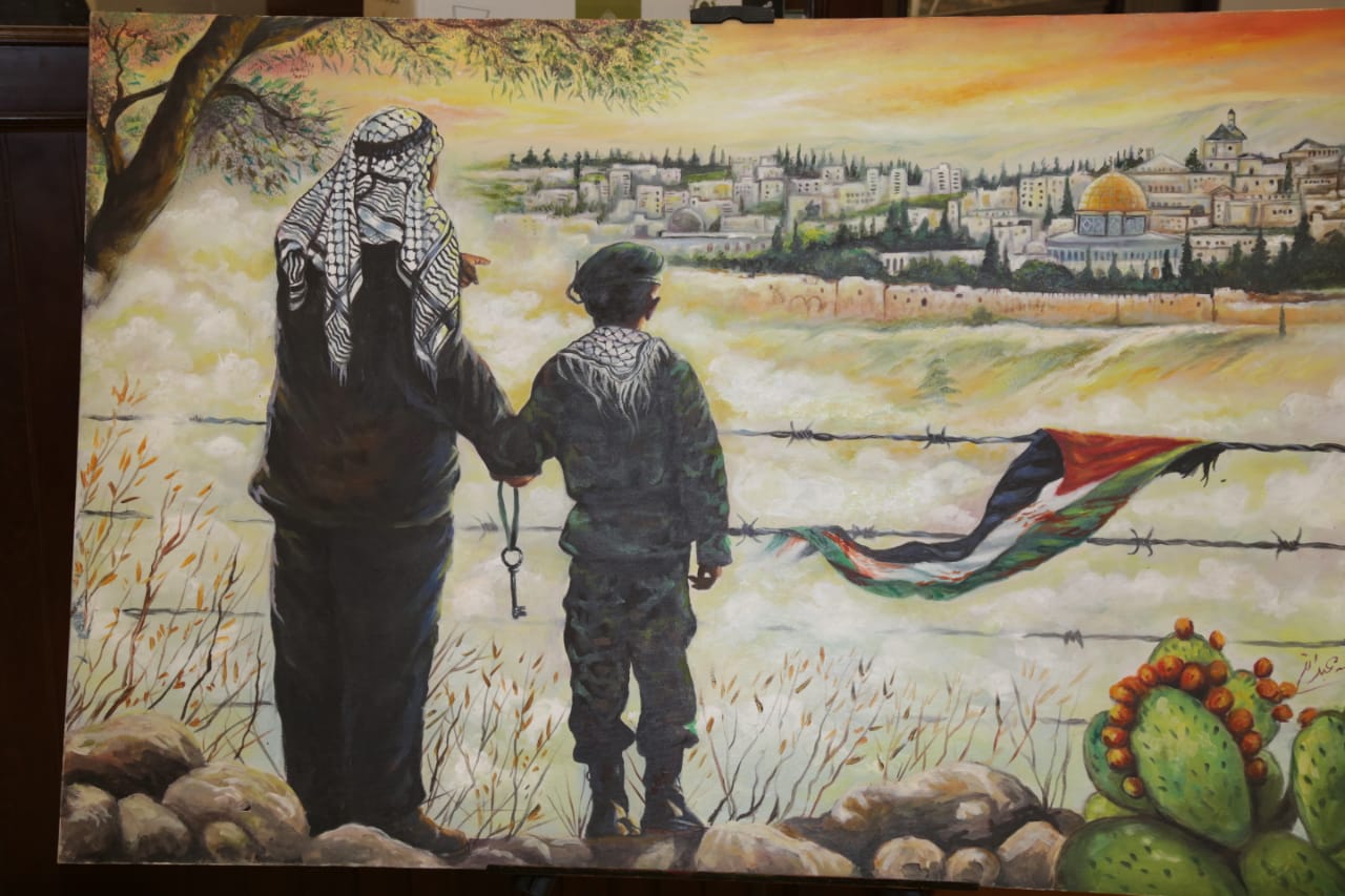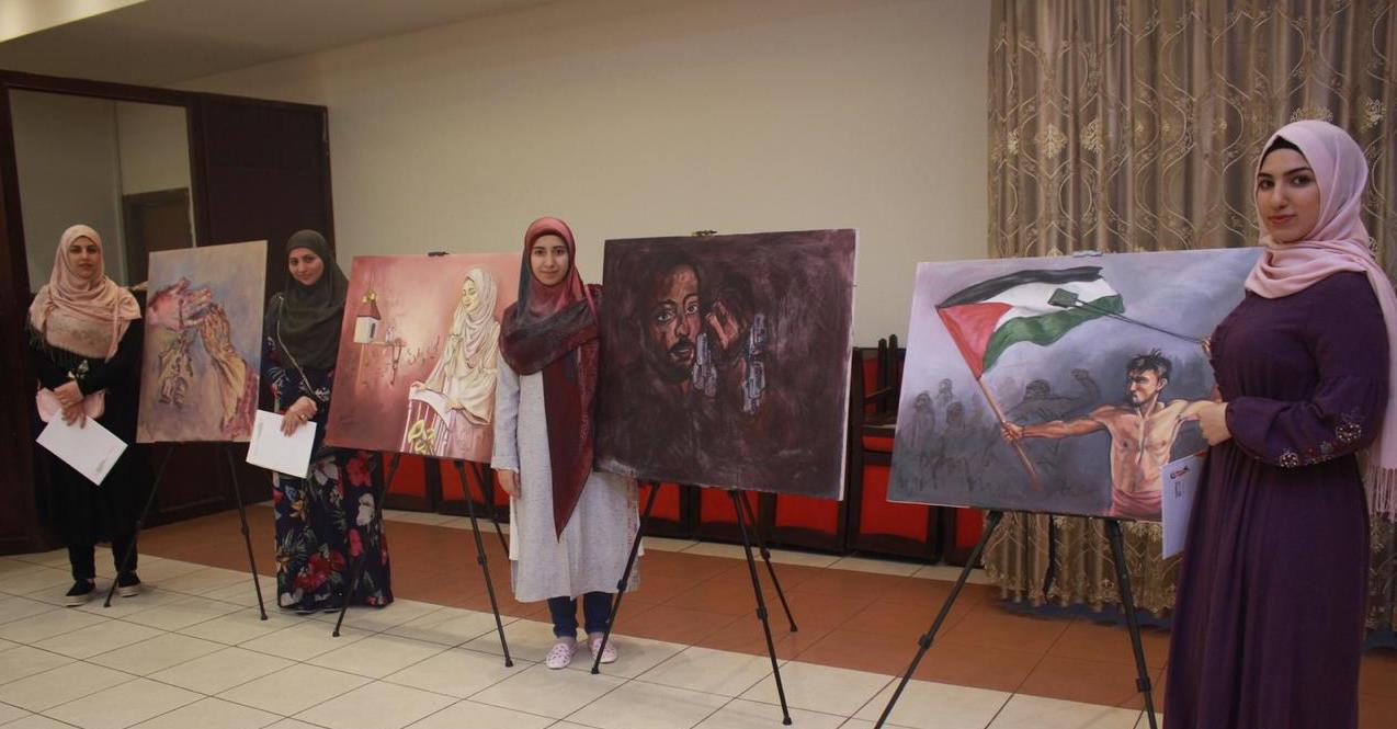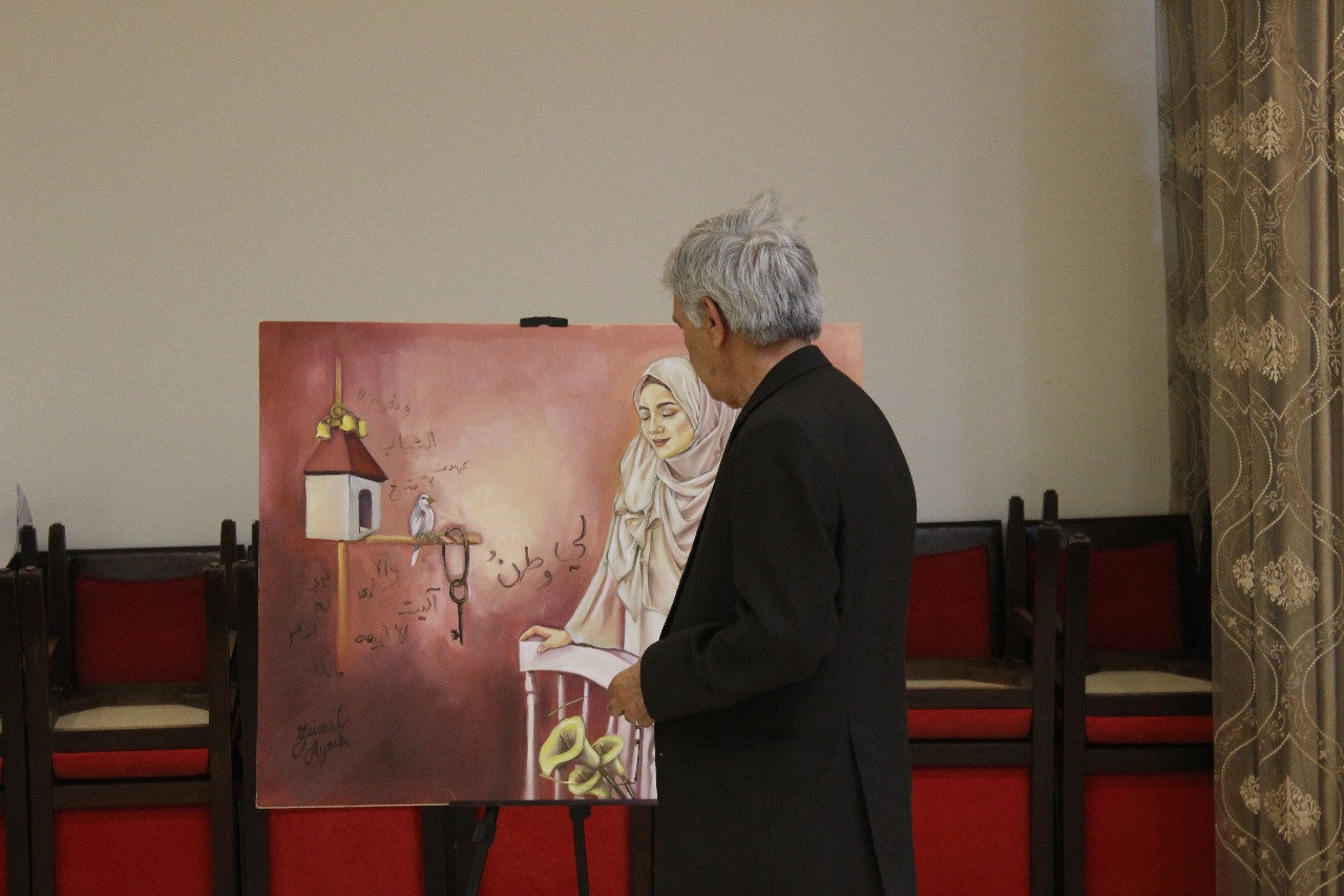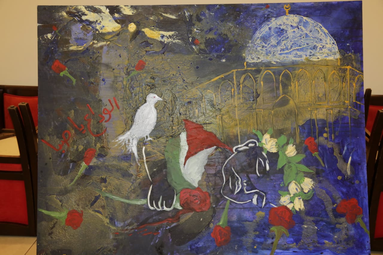 واختتم الحفل بجولة على المعرض التشكيلي حيث عبّرت الاعمال عن المقاومة والعودة والحنين الى فلسطين .