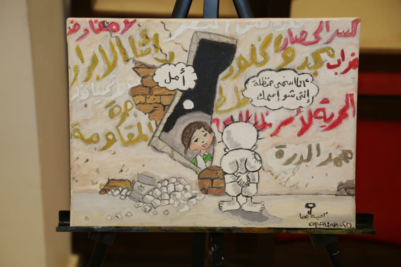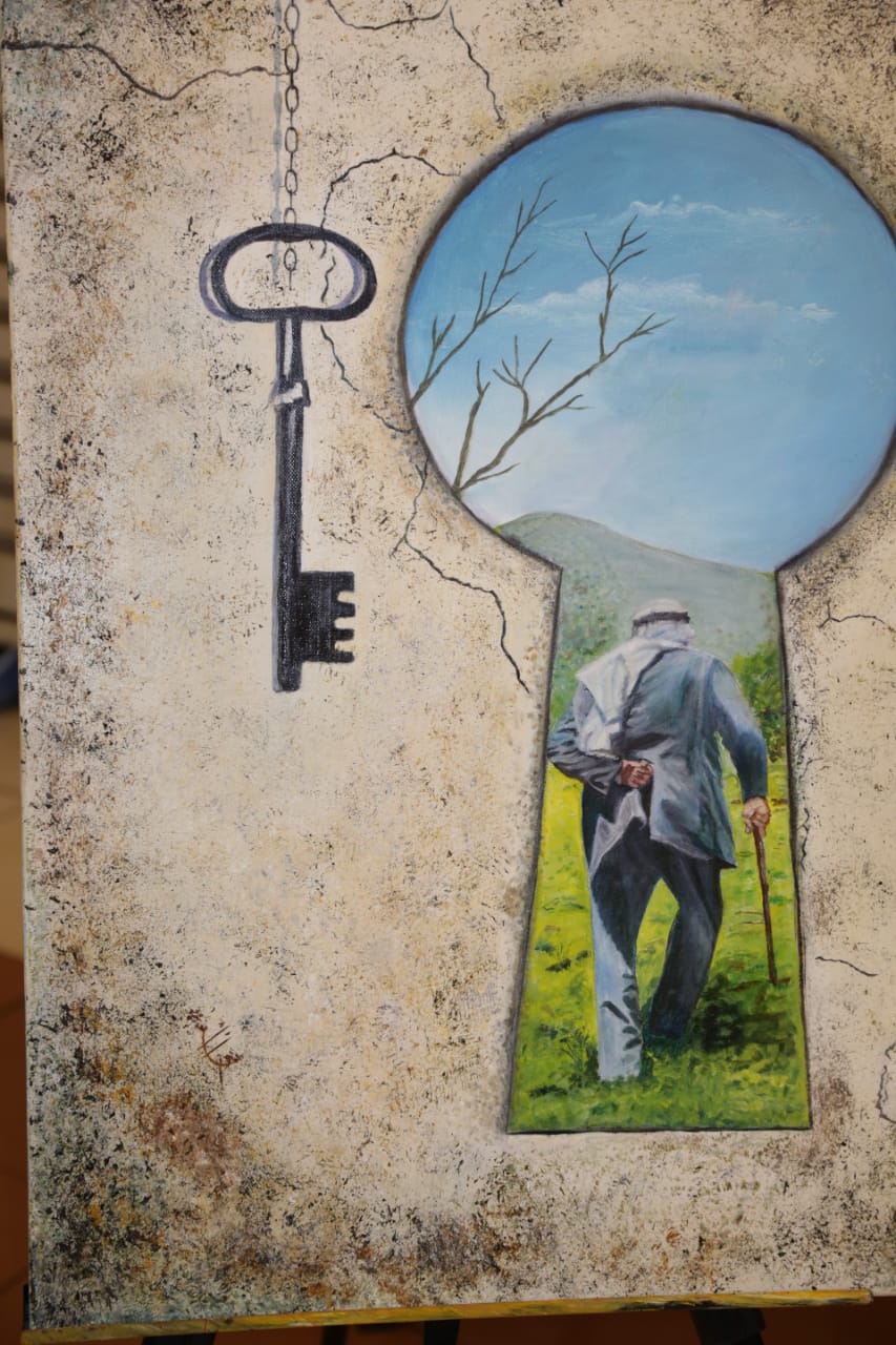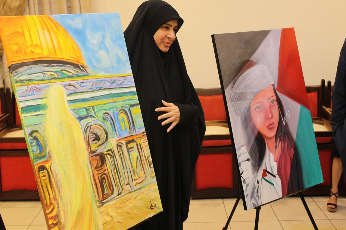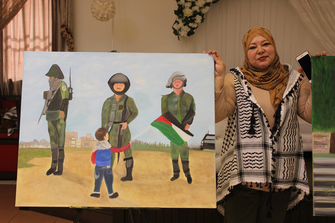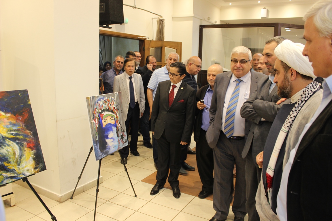 واختتم الحفل بجولة على المعرض التشكيلي حيث عبّرت الاعمال عن المقاومة والعودة والحنين الى فلسطين .