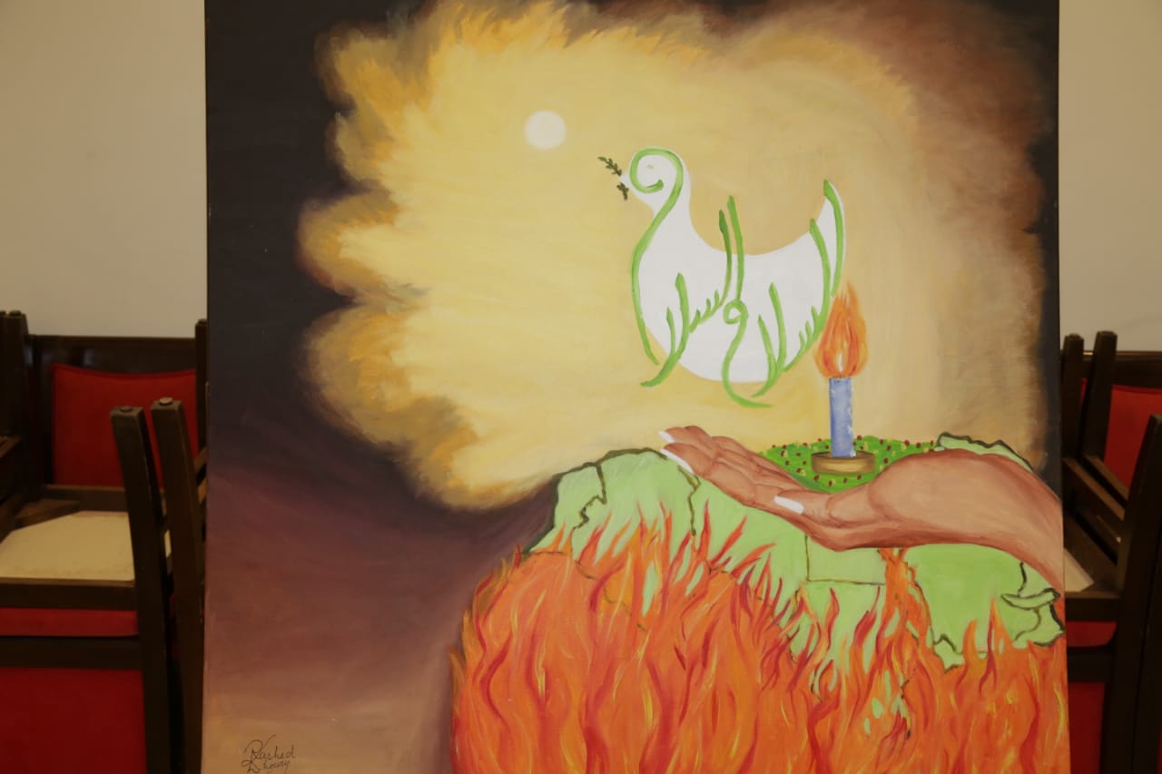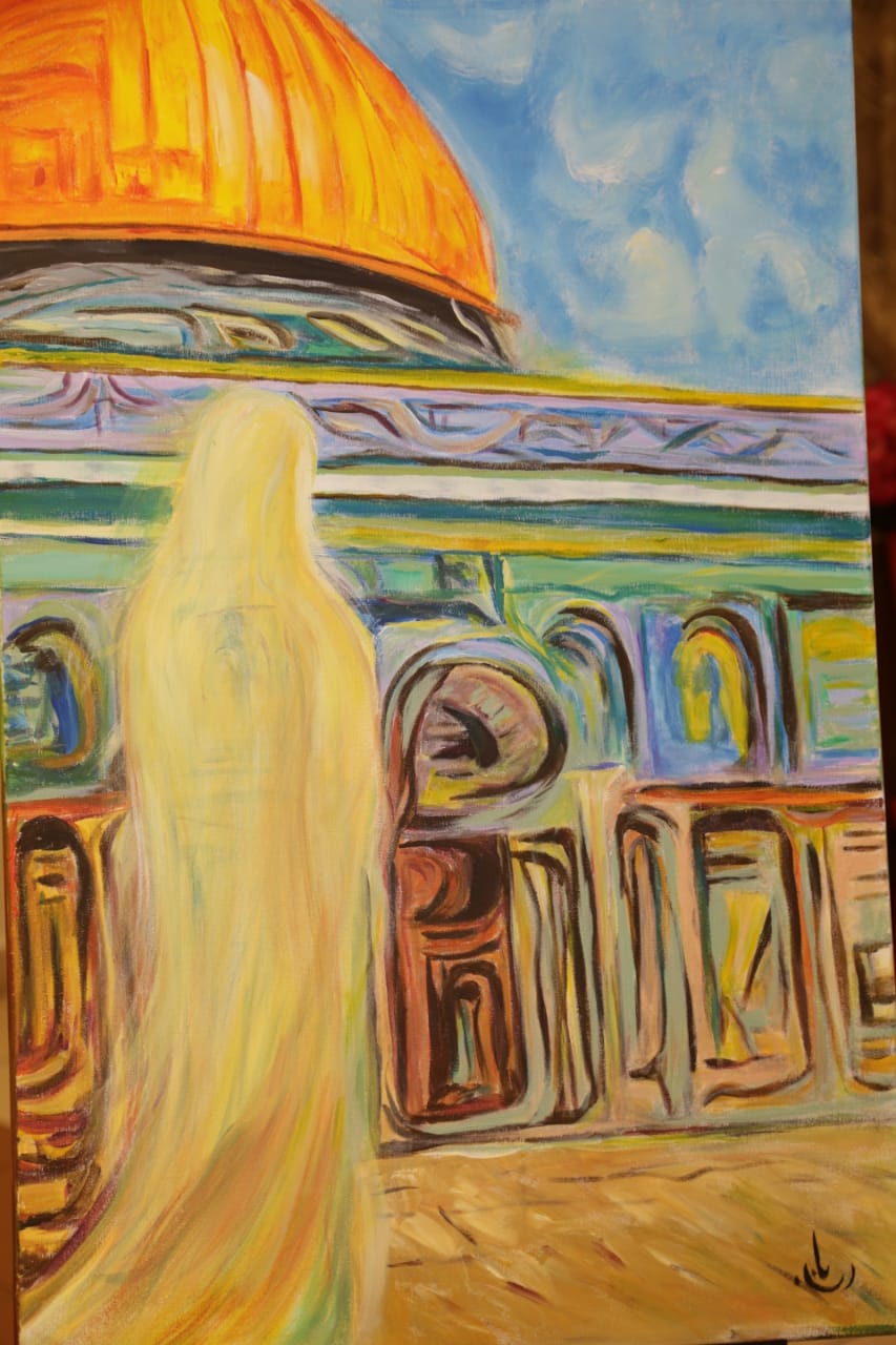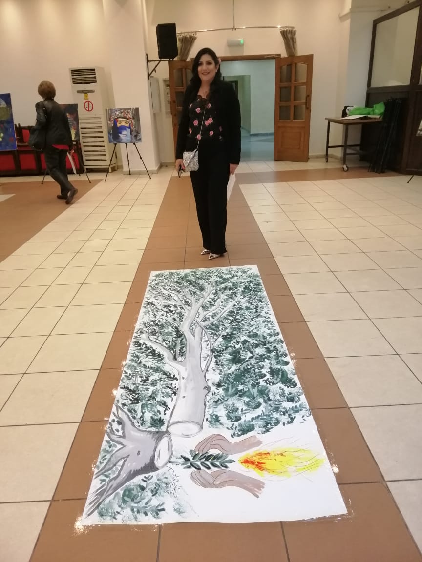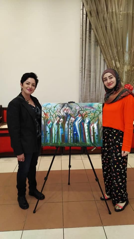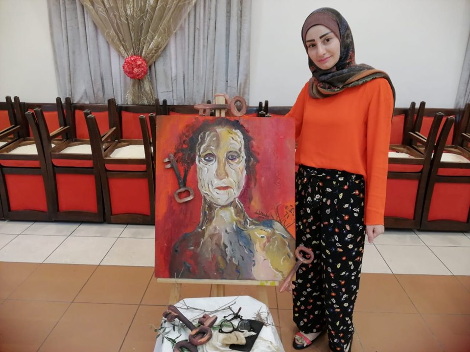 واختتم الحفل بجولة على المعرض التشكيلي حيث عبّرت الاعمال عن المقاومة والعودة والحنين الى فلسطين .