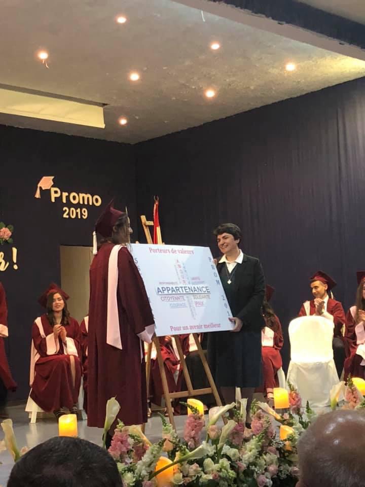 تحت هذا الشعار، احتفلت ثانويّة راهبات القلبَين الأقدسَين – مرجعيون بخرّيجي دفعة 2019 من فروعها الثلاثة في الصفّ الثالث الثانوي. وكان ذلك باحتفال رسميّ مميّز، حضرته شخصيّات المجتمع المحلّي يتقدّمها حضرة الأب بطرس عازار أمين عام المدارس الكاثوليكيّة في لبنان، النائب انور الخليل ممثلاً بالمختار سامي عبلا، النائب اسعد حردان ممثلاً بسامر نقفور، رئيس بلدية جديدة مرجعيون ممثلاً بنائبه ساري غلمية، رئيس بلدية ديرميماس جورج نكد، رئيس بلدية القليعة حنا الخوري ممثلاً بنائبه امين نجم، رئيس بلدية برج الملوك ايلي سليمان، قائد اللواء السابع العقيد سيمون زغيب ممثلاً بالعقيد زياد حريقة ، آمر سرية درك مرجعيون الملازم اول نقولا الحايك ، قائد الكتيبة الاسبانية في اليونييفل المقدم كويستا، مديرة ثانوية راهبات القلبين الاقدسين في مرجعيون الاخت لبيبة مبارك، ولفيف من الكهنة والراهبات، مدراء مدارس وجمعيات ومصارف، وفعاليات عسكرية وتربوية واجتماعية و بلدية ومخاتير وحشد من التلاميذ وذويهم. تكلّم الخرّيجون عن القِيَم التي يحملونها معهم من ثانويّتهم شاكرين الأساتذة والإدارة عليها، وسلّموا الشعلة وراية الثانويّة وعلم لبنان إلى أترابهم في الصفّ الثاني الثانوي... فأثنى الأب عازار بكلمته بحرارة وسعادة على كلّ هذا. وكرّمت الثانويّة بشخص مديرتها الأخت لبيبة مبارك المتعلّمين المتفوّقين وهُنّ ساره جهاد محفوظ، روزانا نمر زامل، جوانا فادي سليمان، جنى محمود خريس، فقُدِّمَت لهُنَّ الهدايا من بنك بيبلوس وفرنسَبنك والسيّد انطوان الخوري ولجنتَي الأهل والمعلّمين في الثانويّة. كما قدّم الخريّجون فقرة غنائيّة أظهرت مواهبهم الفنيّة وأضفت جوًّا شاعريًّا على الاحتفال الذي انتهى بالتهاني والكوكتيل.