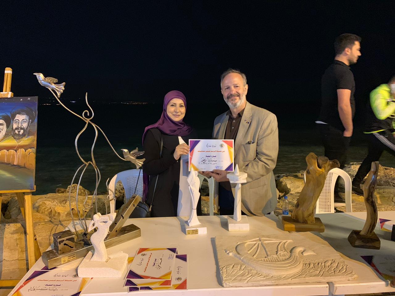 وتوزع الفنانون التشكيليون على الكورنيش الجنوبي ( جادة الرئيس نبيه بري )، حيث استوحوا مواضيع لوحاتهم من أجواء البحر والمناظر الطبيعية، والمعالم الأثرية للمدينةـ كما استضافتهم البلدية وبمناسبة شهر رمضان وأجواء الشهر الفضيل على مأدبة إفطار في مطعم الجواد.