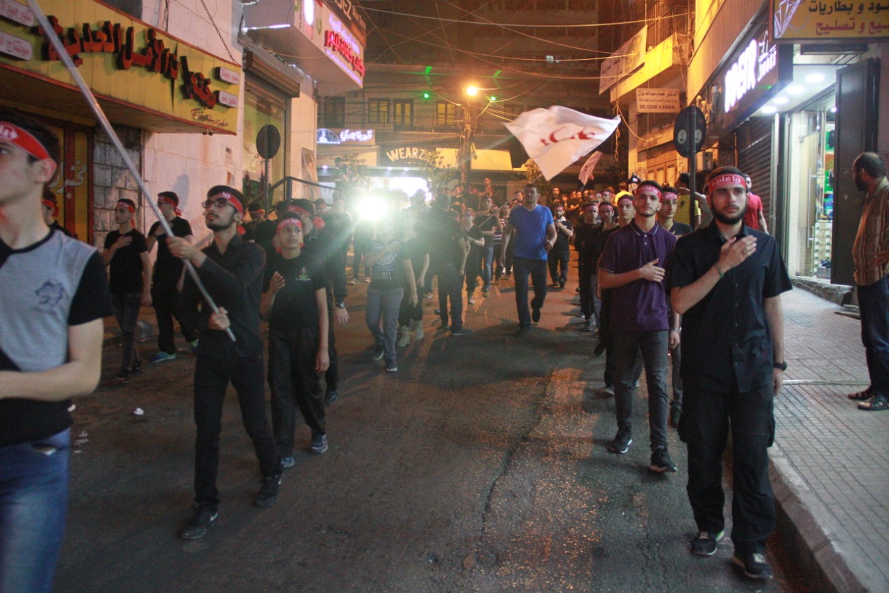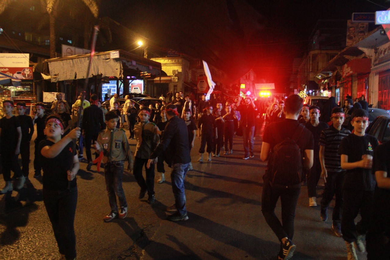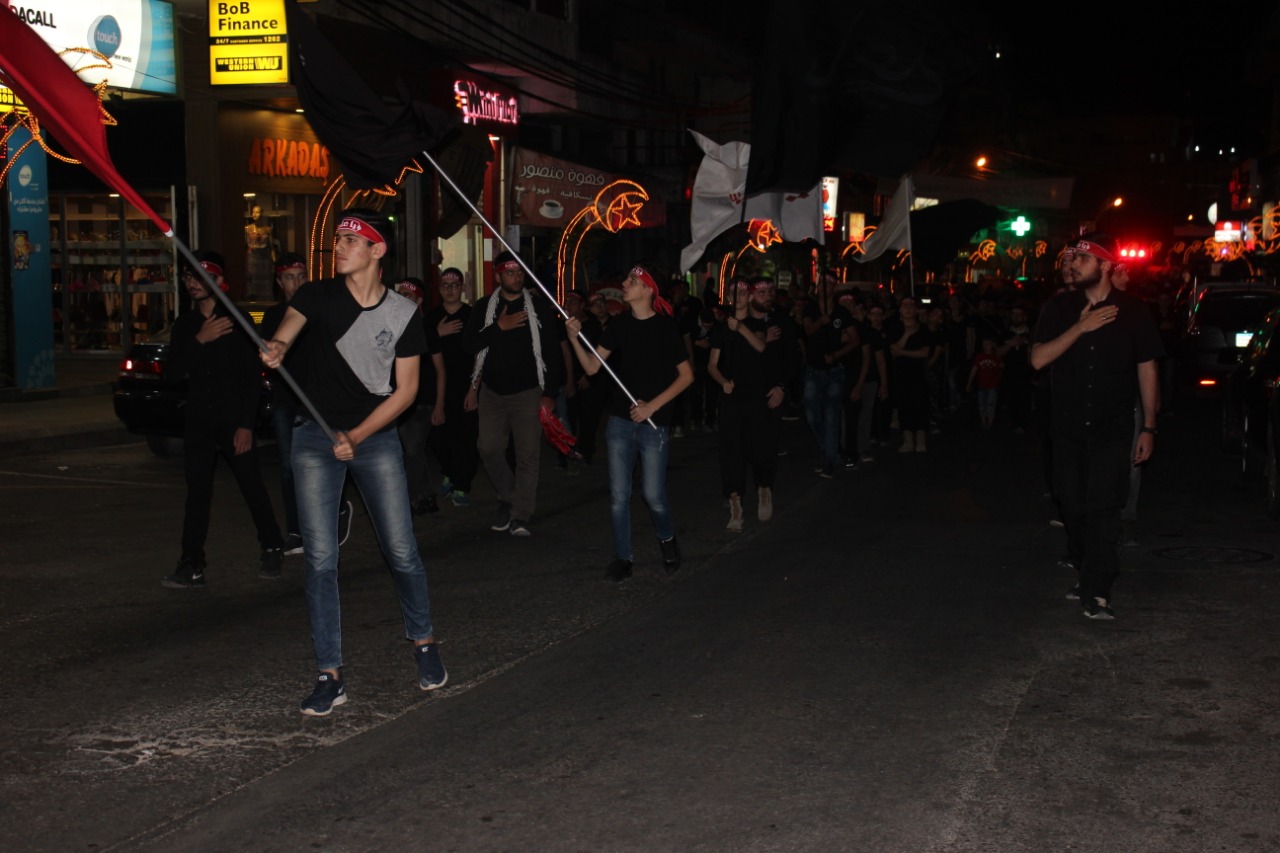 المسيرة جابت شوارع مدينة النبطية وسط نداءات الحزن ولطم الصدور، وصولاً حتى مسجد الإمام الحسين (ع) في المدينة حيث أقيمت حلقات لطم بحضور الرادود حسين عجمي.