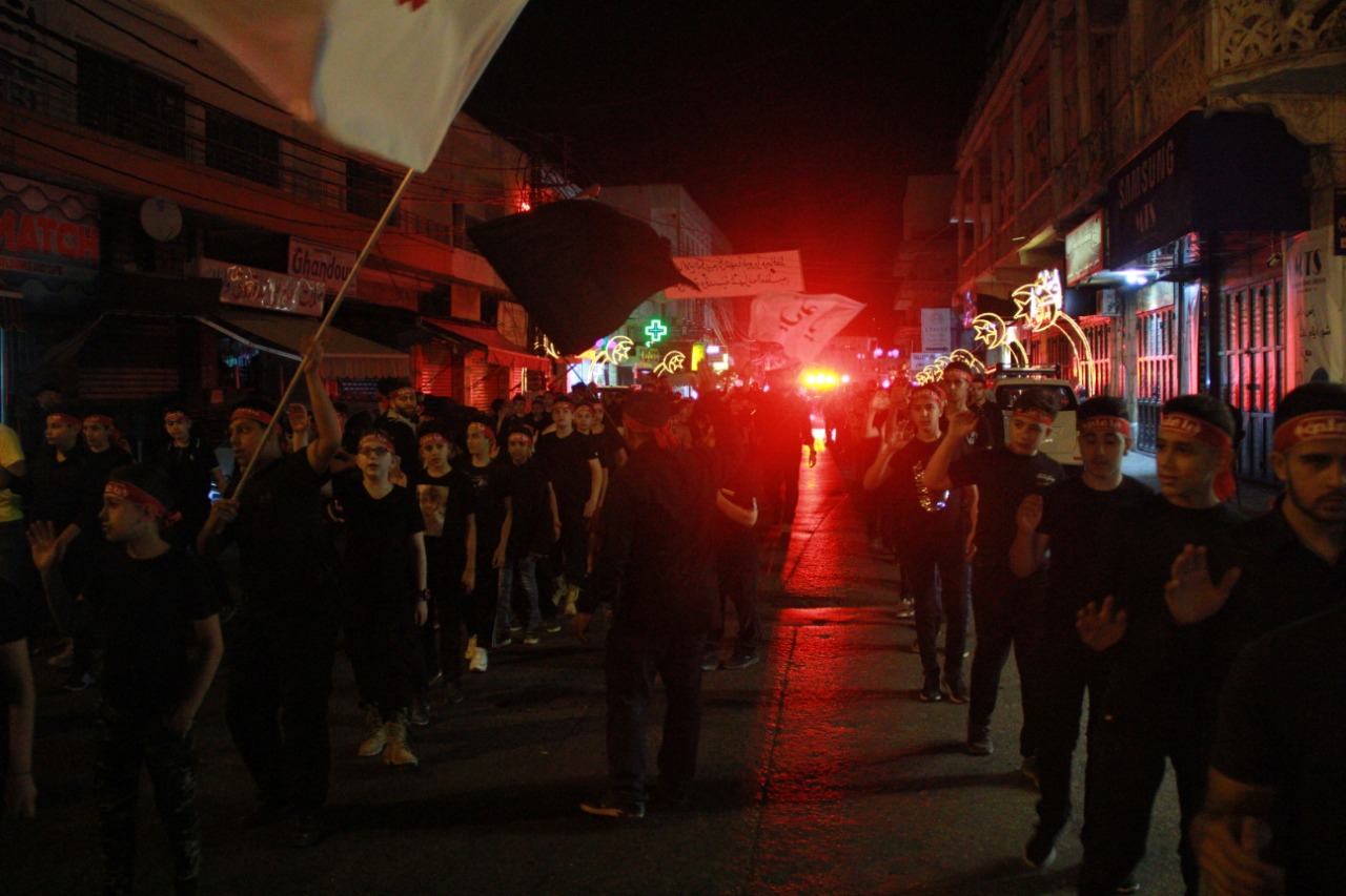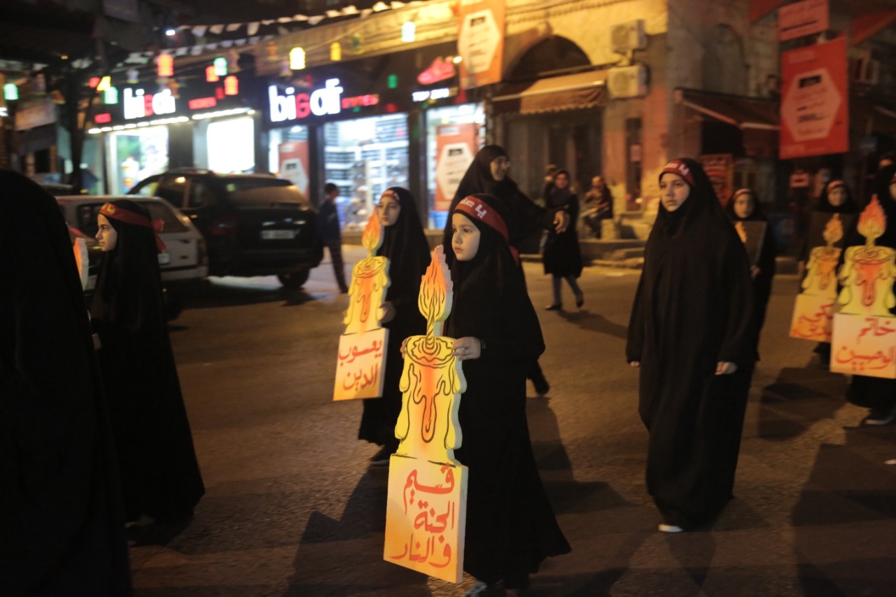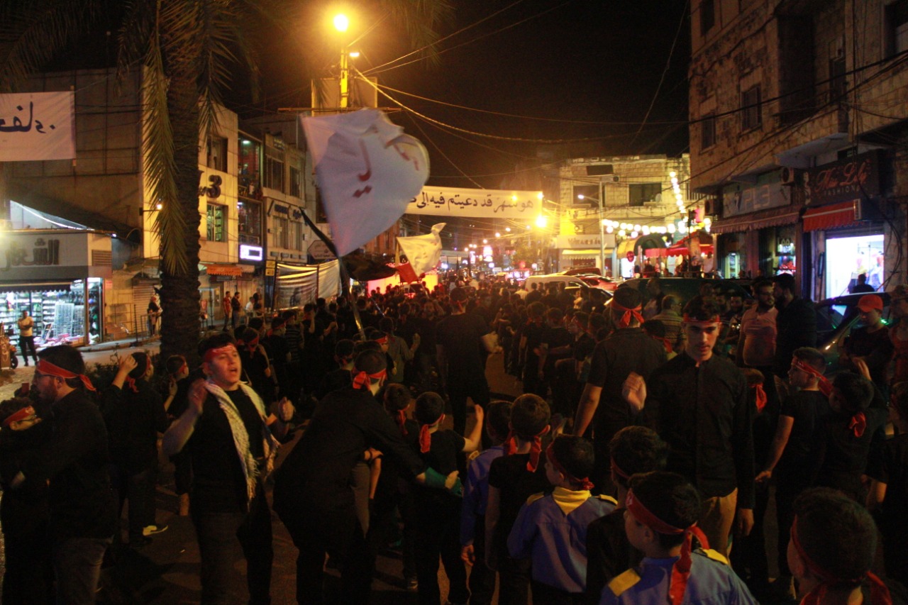 المسيرة جابت شوارع مدينة النبطية وسط نداءات الحزن ولطم الصدور، وصولاً حتى مسجد الإمام الحسين (ع) في المدينة حيث أقيمت حلقات لطم بحضور الرادود حسين عجمي.