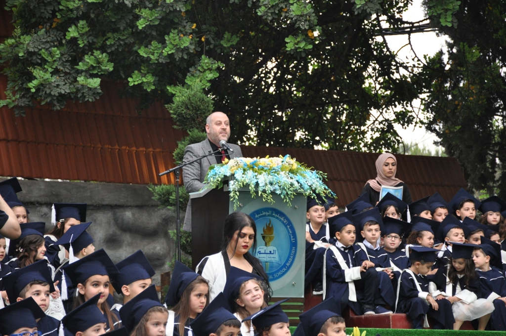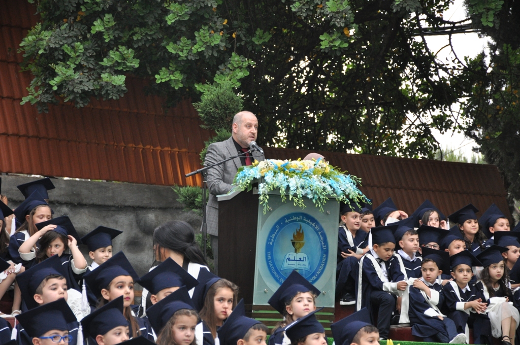 بعد دخول موكب الطلاب المتخرجين، ثم النشيد الوطني اللبناني ونشيد المدرسة، قدم طلاب من المدرسة رقصات فنية ، ثم ألقى رئيس المدرسة الاستاذ شادي الحجار كلمة استهلها بأبيات الشعر التالية: