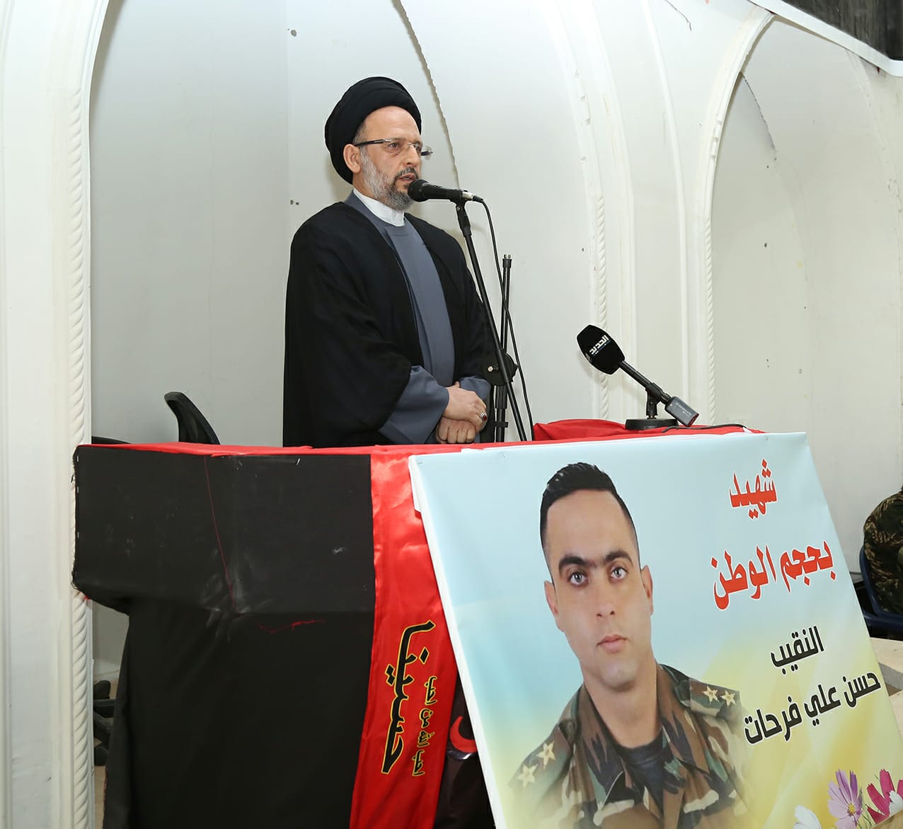 كلام فضل الله جاء خلال تأبين الشهيد النقيب حسن علي فرحات الذي سقط خلال التصدي للعملية الإرهابية في طرابلس في حسينية بلدته برعشيت، بحضور سماحته ولفيف من العلماء ووفد مثل النائب طلال ارسلان وعدد من ضباط الجيش اللبناني وفعاليات أمنية وبلدية واختيارية وحزبية واجتماعية وحشد من أهالي برعشيت والجوار.