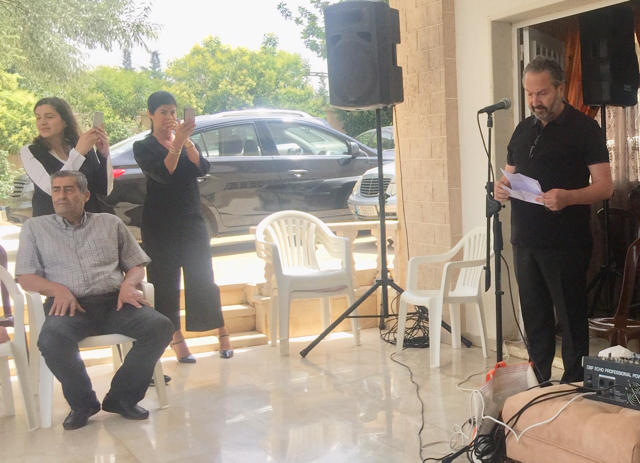 بدأ الحفل الكريم بقصيدة رثاء وجدانية، نظمها وألقاها نجل الفقيد د. عماد عبدالله، مصورا اللقاء الحتمي في دار الآخرة ، دار البقاء والخلود، مُظهراً حالة الاشتياق اللامحدودة بين المرحوم والده وشقيقه الأصغر فقيد الشباب الطالب الجامعي المرحوم حسن، الذي قضى في حادث سير أليم قبل ٣٥ سنة.