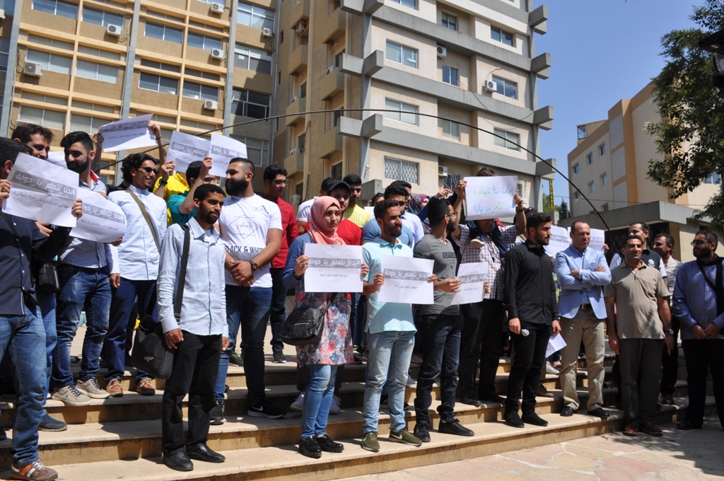وحمل عدد من الطلاب المعتصمين لافتات كتب على بعضها " بدنا نتعلم يا دولة،لان نحن مستقبل البلد"، و" مش حلوة بلانا بدنا نتعلم "، و" شو بخصوص مستقبلنا بدنا نتعلم".