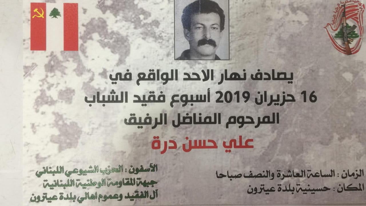تقام الذكرى عند الساعة العاشرة والنصف صباحاً في حسينية بلدته عيترون الجنوبية