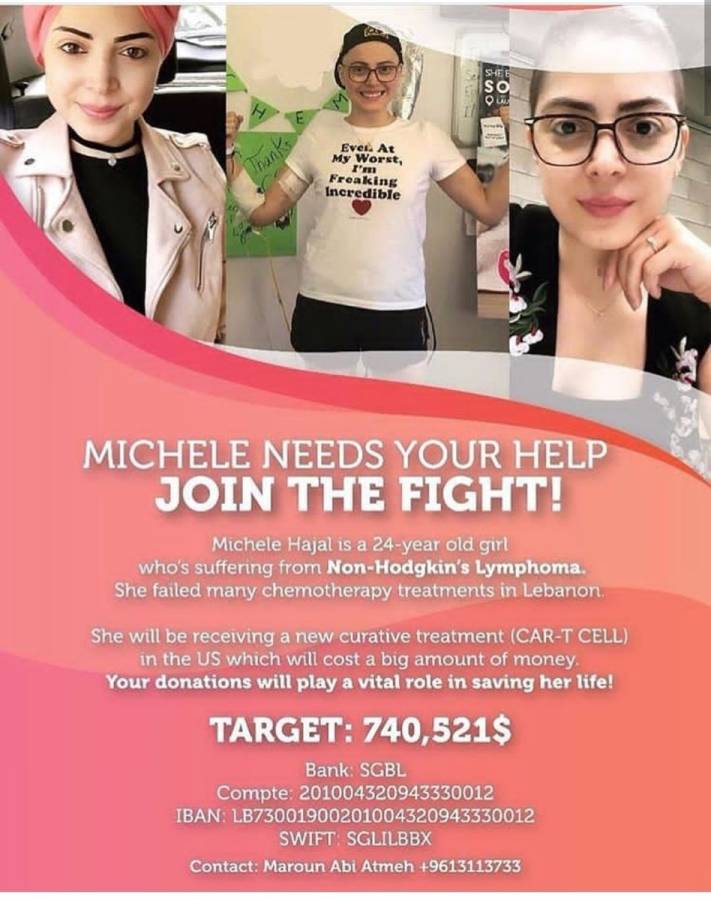 هذا العلاج الوحيد لحالة ميشيل يتطلب تأمين مبلغ 742 الف دولار، تقف هذه الكلفة العالية حاجزاً في وجه إبنة الـ24 عاماً، "الوقت يدهمنا وصحتها لا تتحمل التأجيل. هذا الخبيث ينمو في داخلها". صحيح ان حملة التبرعات والمساعدات انطلقت بزخم وقوة وقد تركت أثراً في نفوس كثيرين، لكن ما زلنا بحاجة الى دعم أكبر، مهما كان بسيطاً، لتأمين بقية المبلغ، وهو 500 الف دولار.