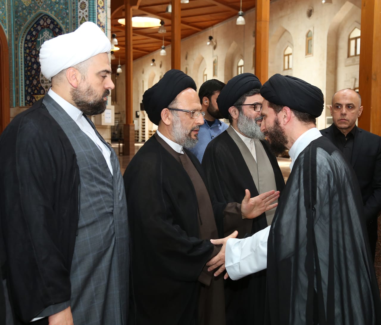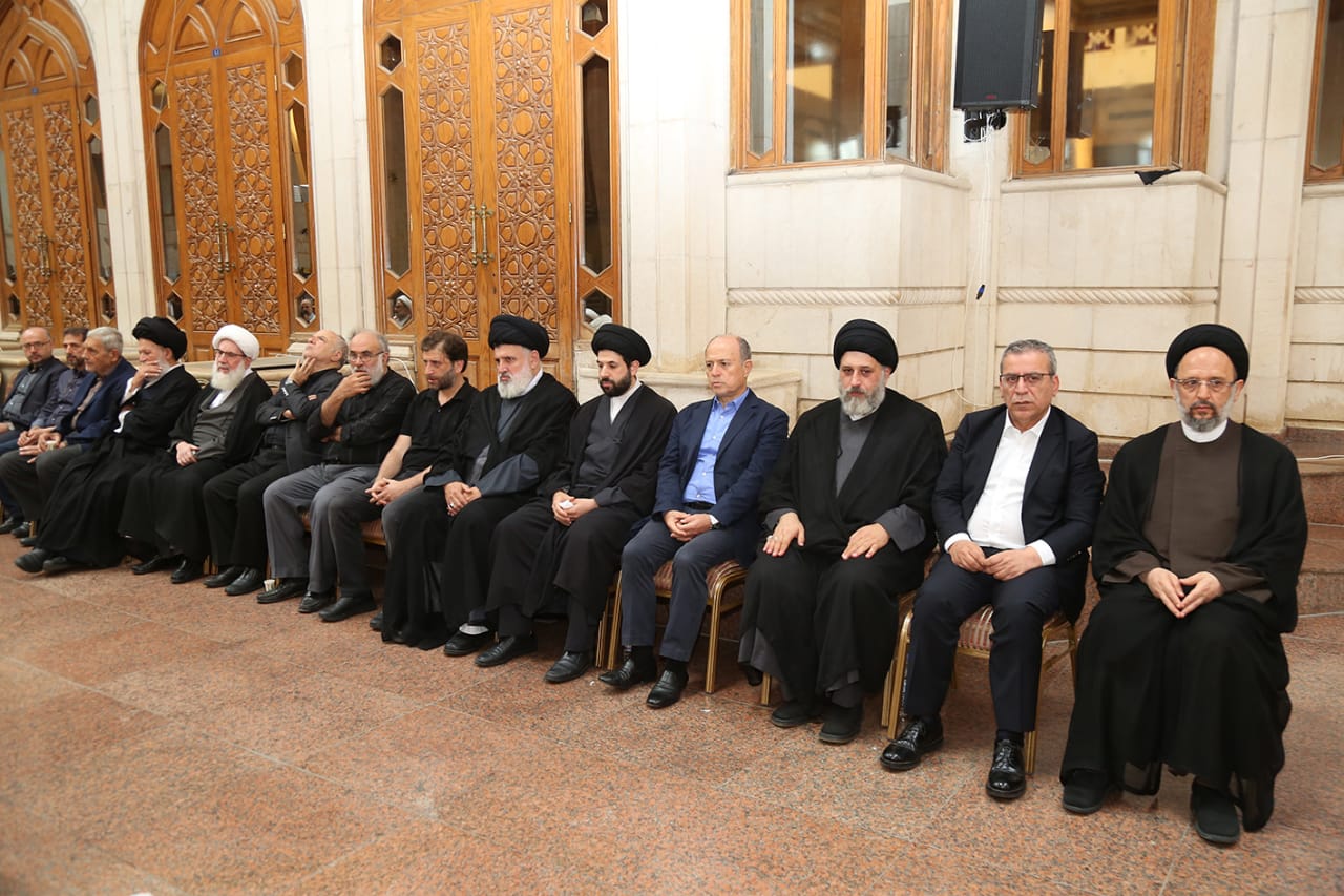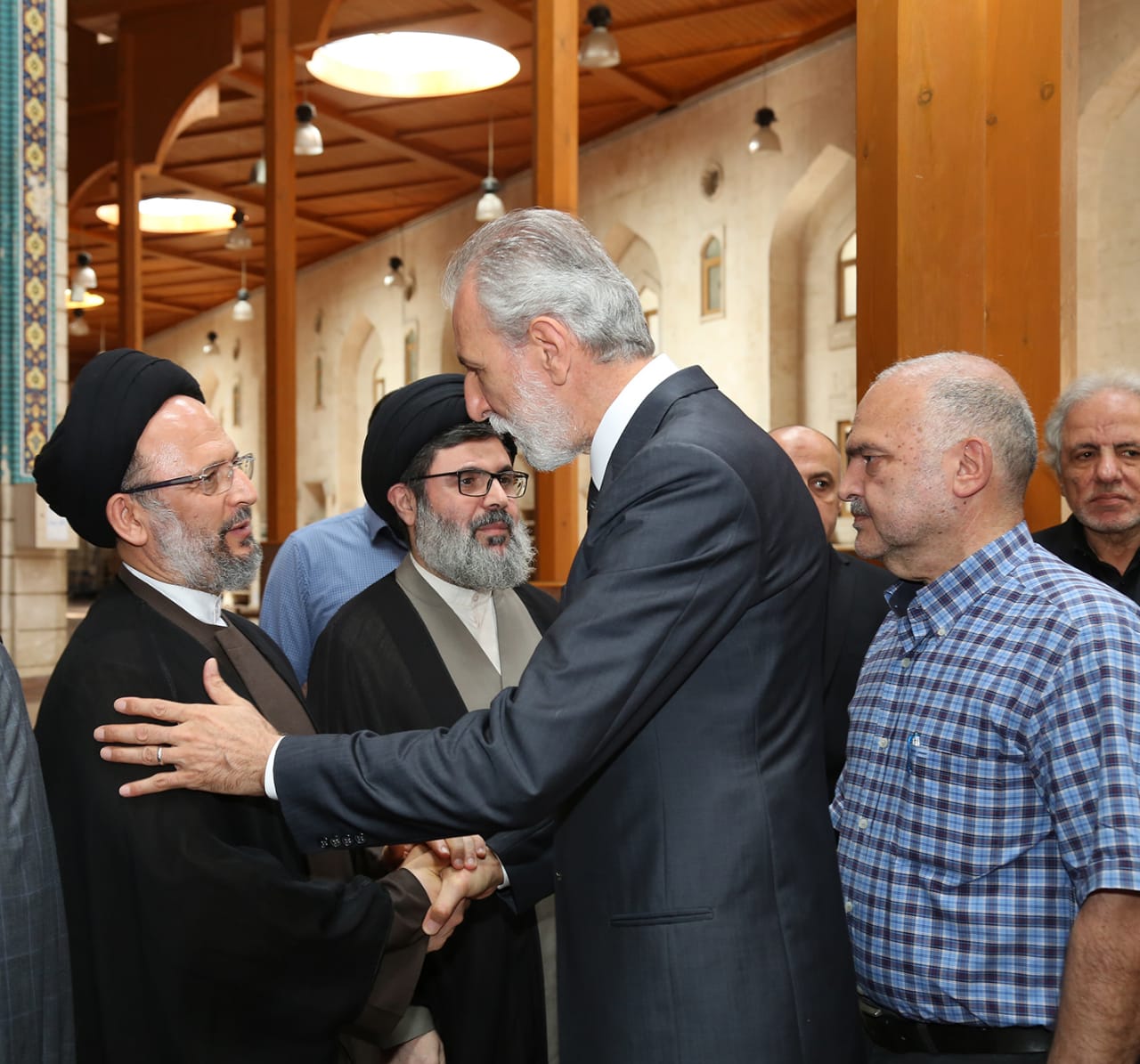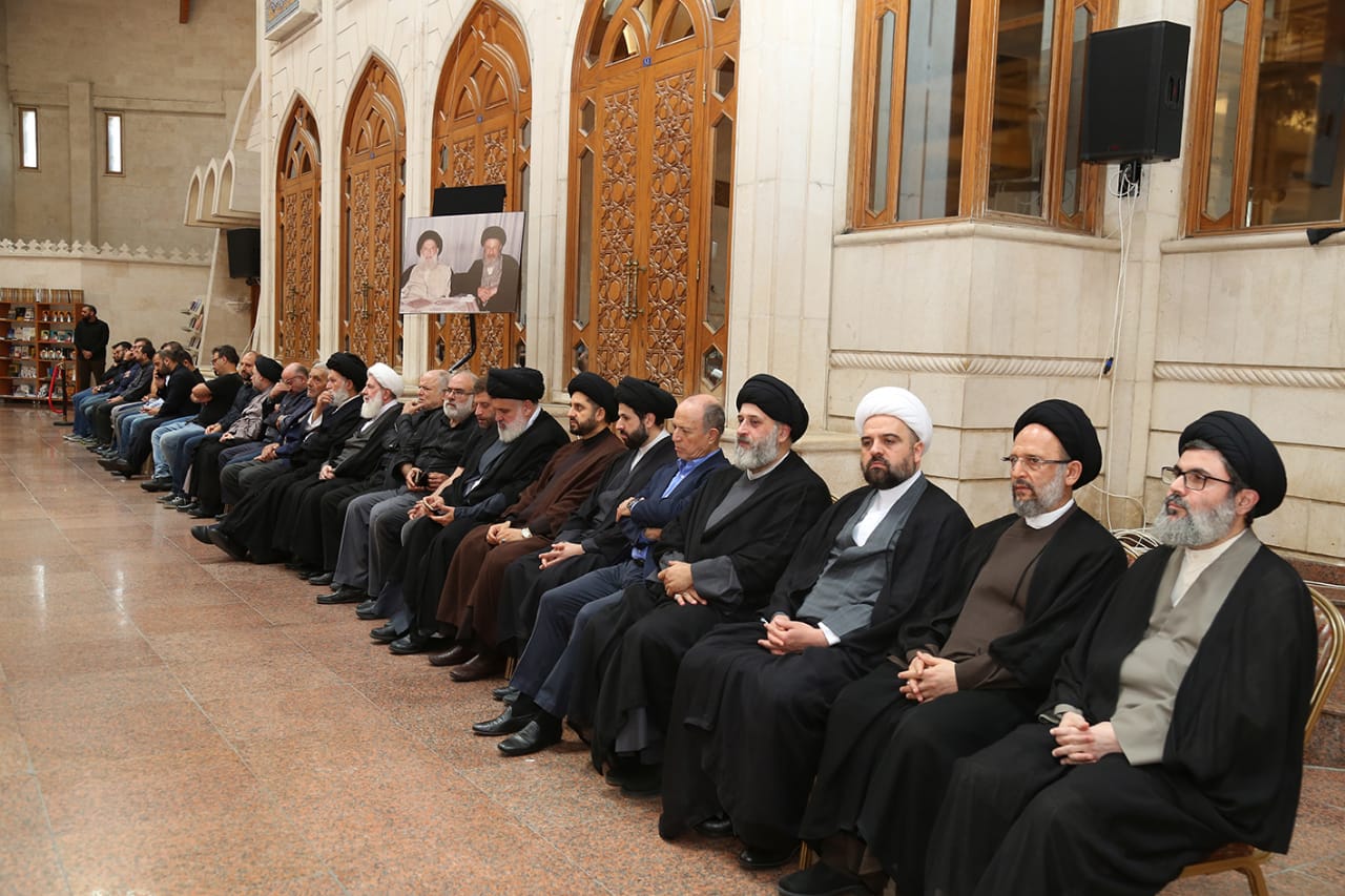 وقد حضر عدد من الشخصيّات السياسيّة والدينية والاجتماعية والبلدية والإعلامية والثقافية، لتقديم واجب العزاء. ومن الشّخصيّات، النّائب علي بزي، الذي قدّم العزاء باسم رئيس مجلس النوّاب نبيه بري وحركة أمل، كما حضر معزّياً رئيس المجلس التنفيذي في حزب الله، السيّد هاشم صفي الدين، والمفتي الجعفري الممتاز الشّيخ أحمد قبلان، والنائب إبراهيم الموسوي، ووفد من الجماعة الإسلامية برئاسة أمينها العام السابق إبراهيم المصري، والوزير السابق إبراهيم شمس الدين، والأمين العام السابق للمحامين العرب عمر زين، والأمين العام لملتقى الأديان سماحة الشيخ حسين شحادة، والمستشار الثقافي الإيراني في لبنان محمد مهدي شريعتمدار، ووفد من بلديات حارة حريك برئاسة رئيسها زياد واكد، إضافةً إلى وفود شعبية غصّت بهم الباحة.