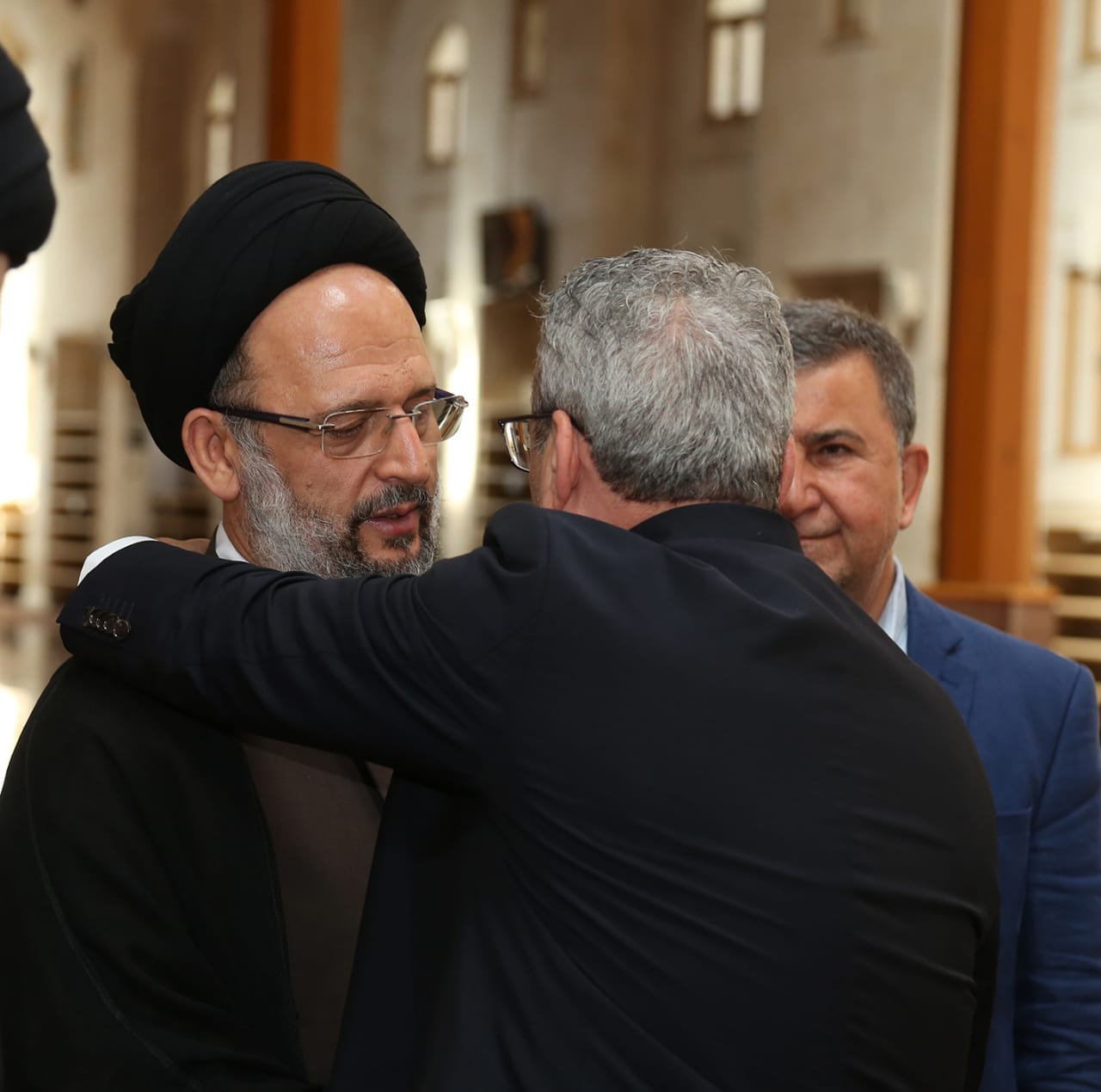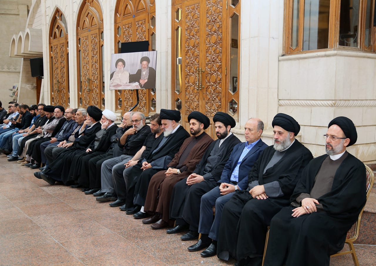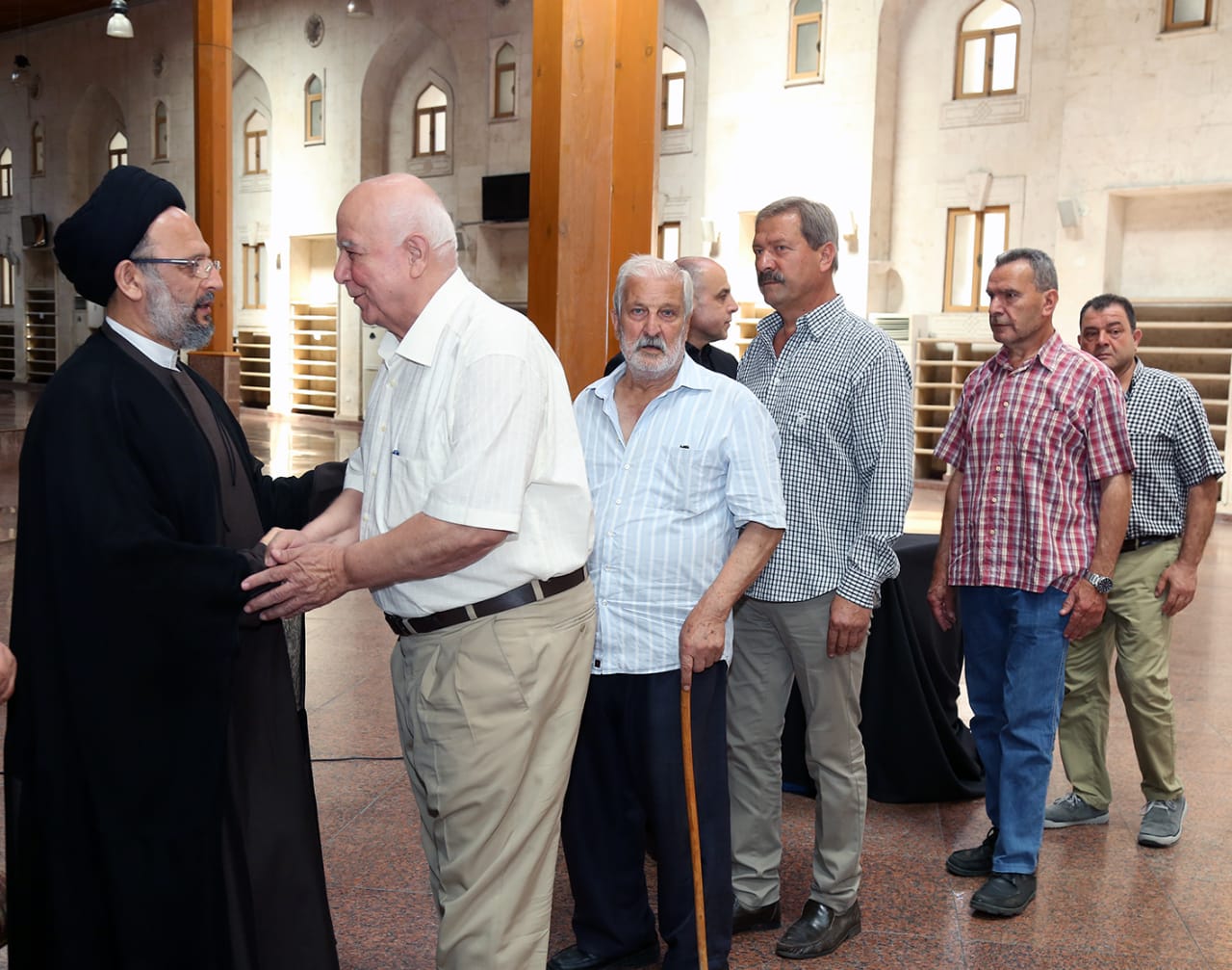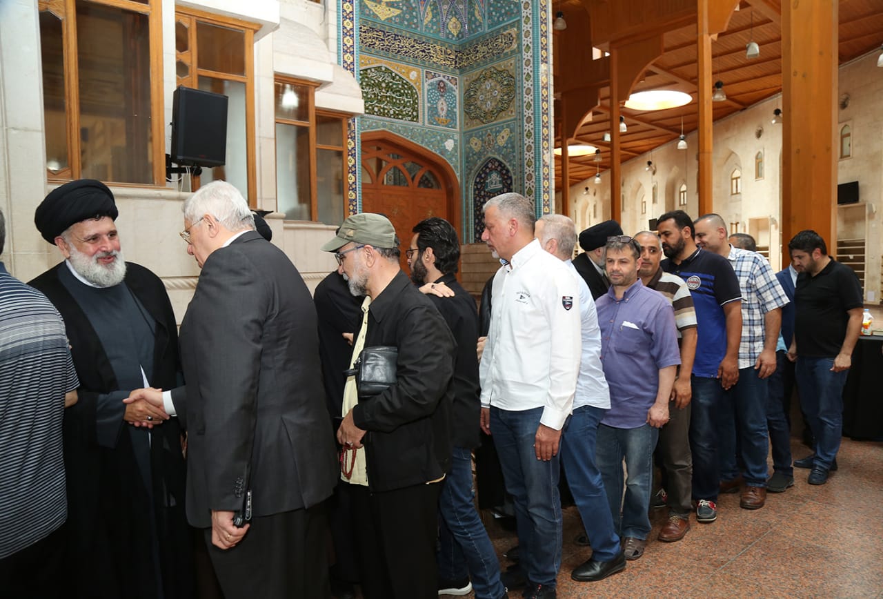 وقد حضر عدد من الشخصيّات السياسيّة والدينية والاجتماعية والبلدية والإعلامية والثقافية، لتقديم واجب العزاء. ومن الشّخصيّات، النّائب علي بزي، الذي قدّم العزاء باسم رئيس مجلس النوّاب نبيه بري وحركة أمل، كما حضر معزّياً رئيس المجلس التنفيذي في حزب الله، السيّد هاشم صفي الدين، والمفتي الجعفري الممتاز الشّيخ أحمد قبلان، والنائب إبراهيم الموسوي، ووفد من الجماعة الإسلامية برئاسة أمينها العام السابق إبراهيم المصري، والوزير السابق إبراهيم شمس الدين، والأمين العام السابق للمحامين العرب عمر زين، والأمين العام لملتقى الأديان سماحة الشيخ حسين شحادة، والمستشار الثقافي الإيراني في لبنان محمد مهدي شريعتمدار، ووفد من بلديات حارة حريك برئاسة رئيسها زياد واكد، إضافةً إلى وفود شعبية غصّت بهم الباحة.